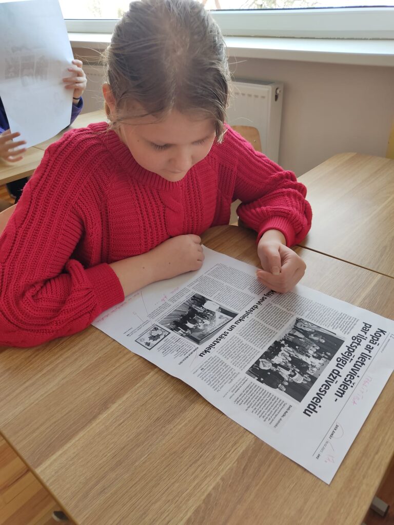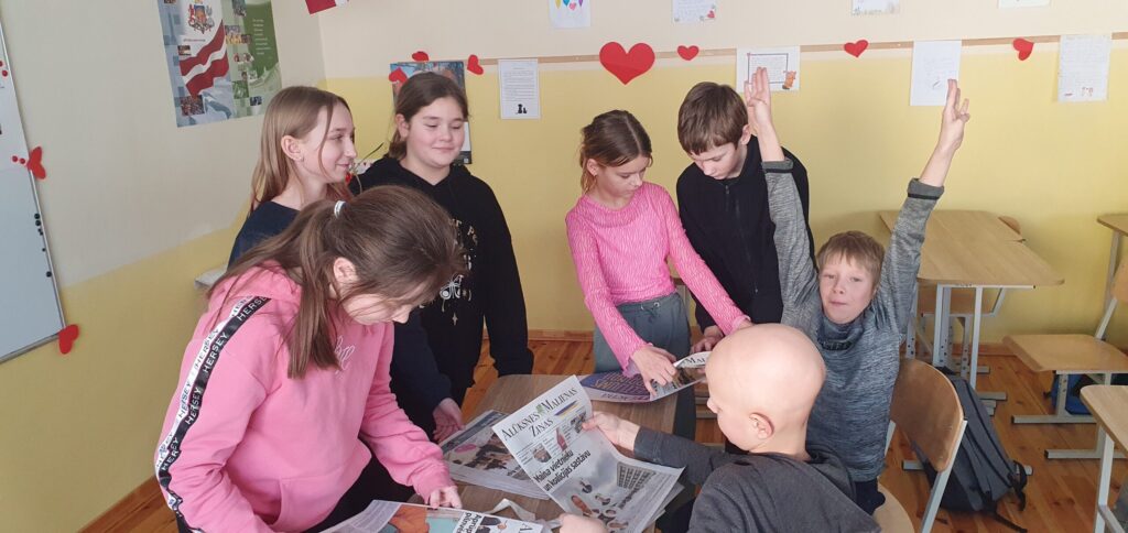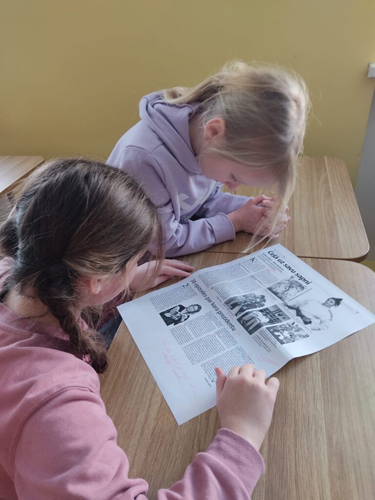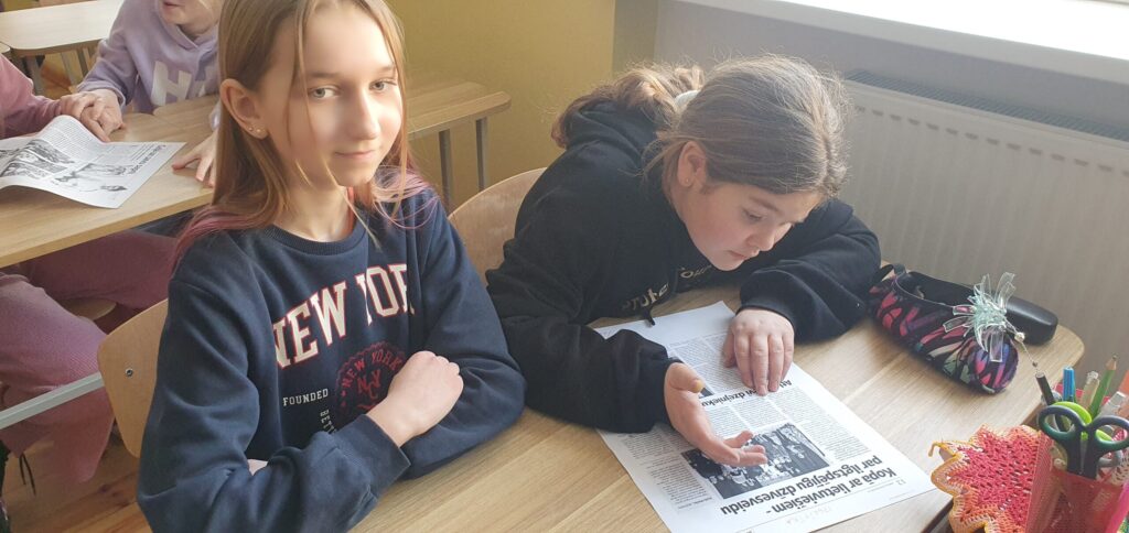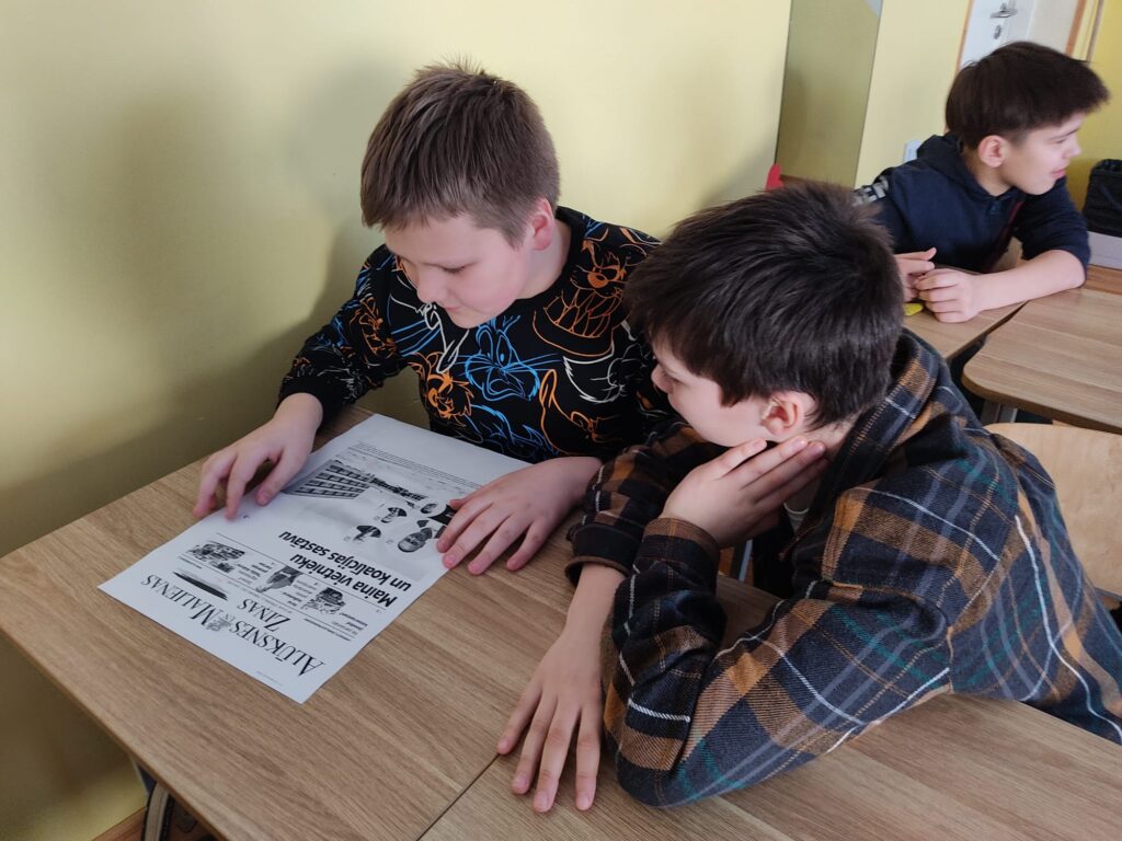 viedtālrunis, ar ko fiksēt interesantus notikumus un sūtīt tos laikrakstam. Pārrunājām arī, kāda katram bijusi saskare ar avīzi, un, izrādījās, vairāki laikraksta slejās lasījuši gan par saviem skolasbiedriem, gan ģimenes locekļiem.
