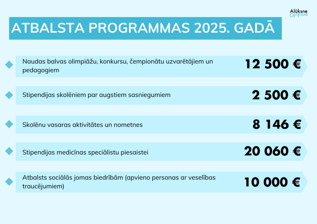 Tāpat arī šogad pašvaldība piešķirs līdzekļus: