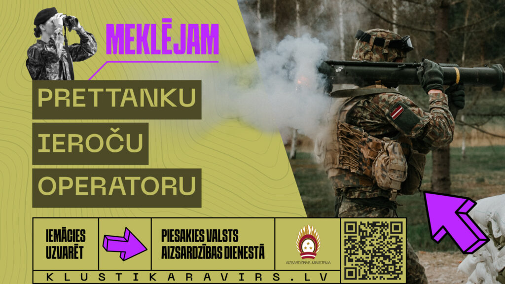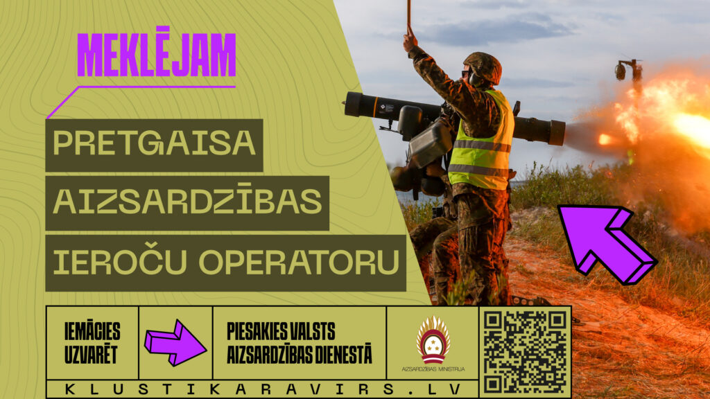 Latvijas pilsoņi – vīrieši un sievietes – vecumā no 18 līdz līdz 27 gadiem aicināti brīvprātīgi pieteikties valsts aizsardzības dienesta 2025. gada vasaras iesaukumam līdz 2024. gada 20. novembrim, elektroniski aizpildot pieteikumu anketu vienotajā rekrutēšanas platformā: www.klustikaravirs.lv/valsts-aizsardzibas-dienests