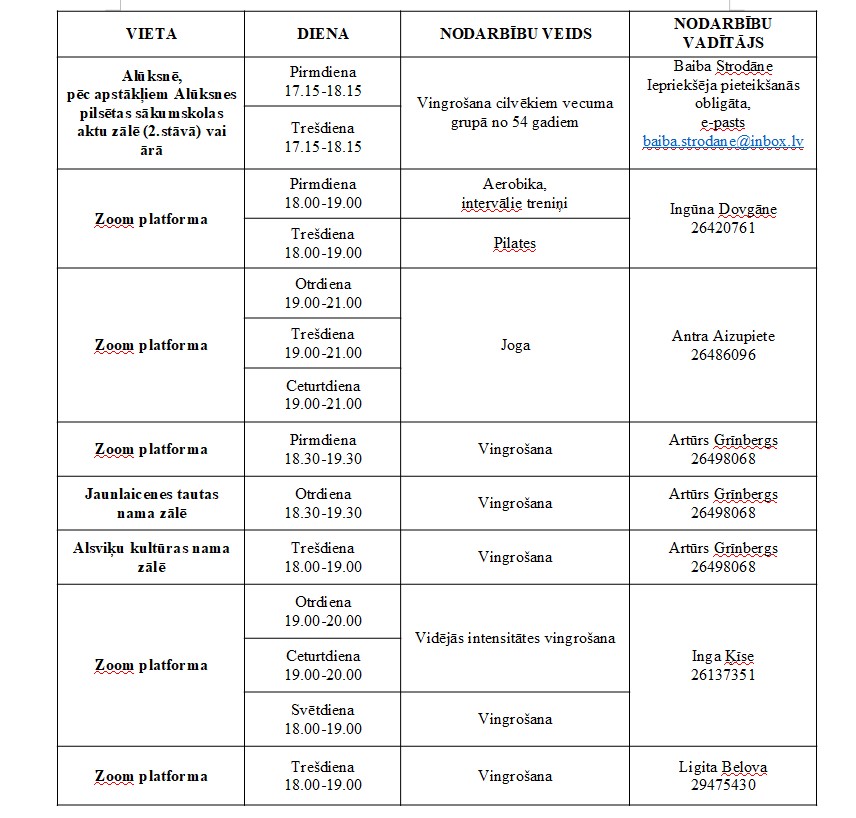Jāņem vērā, ka klātienes vingrošanas grupās vietu skaits ir ierobežots un nodarbības norisināsies, ievērojot valstī noteiktos epidemioloģiskās drošības pasākumus Covid-19 infekcijas izplatības ierobežošanai.