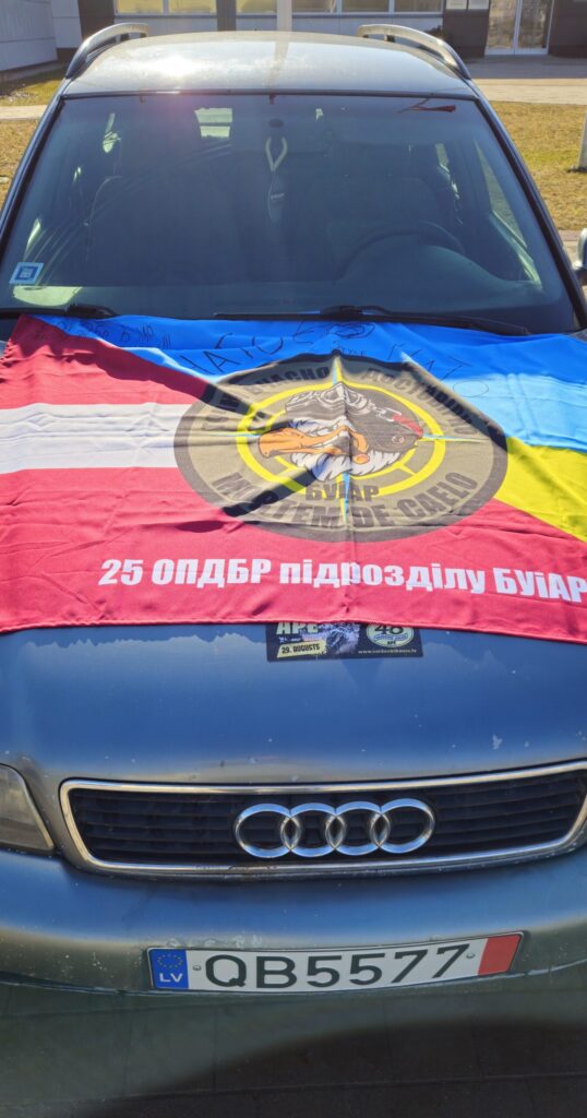 “No Alūksnes brauks divas mašīnas un Rīgā pievienosies vēl divas, jo tām līdzekļi saziedoti galvaspilsētā. Šoferi būs arī no Rīgas, tādēļ tās netika dzītas uz Alūksni, lai lieki netērētos. Brauks Edmunds Jasinskis, kurš ir bijis jau pagājušajā reizē, piebiedrosies Artis Alksnis, no Rīgas brauks mūsu trompetists Kristiāns Kalva, kurš mums ir aktīvs palīgs, un Ivo Romanovskis, kurš ir pieredzējis un vairākas reizes braucis kopā ar mums. Visi puiši ir ar pieredzi konvoja dalībā. No Alūksnes uz Ukrainu dosies “Audi A4” un “Nissan X-trail”, kurš ir Alūksnes rallija džips, ar kuru radās problēmas pirms iepriekšējā brauciena, tagad tika saremontēts un devās ceļā. No Rīgas būs “VW Sharan” un “VW Universal”,” stāsta fonda brīvprātīgais Uldis Krievups. Viņš pateicas Uģim Bērziņam, kurš palīdz un remontē konvoja mašīnas, un Dairim Ozoliņam, kurš tās visas krāso.