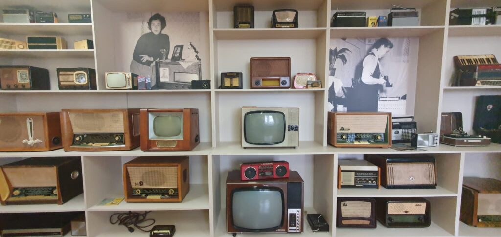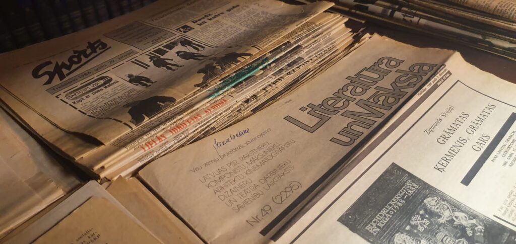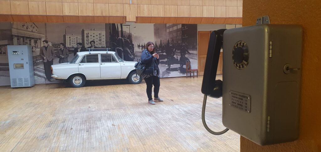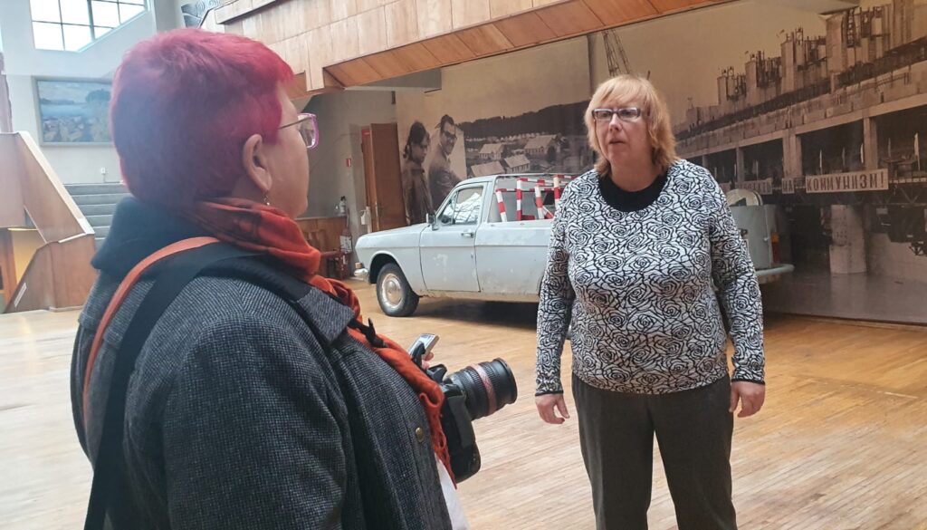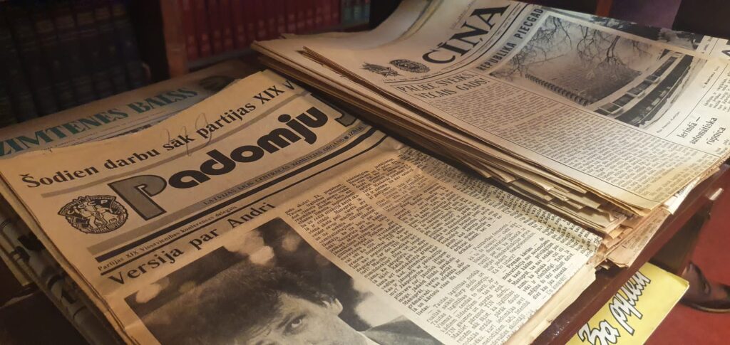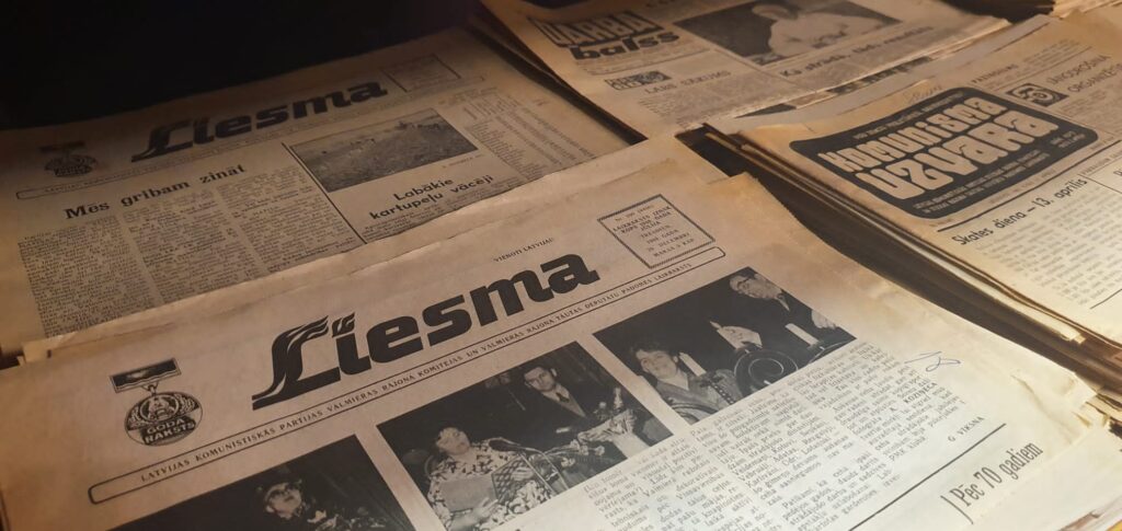 Gāzes automāts un moskvičs “cveta belij noči”, telefons ar griežamo ripu (vai jūs atceraties savu mājas telefona numuru tālajos astoņdesmitajos?), padomju košās bižutērijas brošas un šokolāde “Lukss”, rakstāmmašīnas un neilona iepirkumu tīkliņi, patafons “Junosķ” un vinila skaņu plates, krokodils Gena rotaļlietu plauktā, “Allažu ķimelis” bāriņā un cigaretes “Astra” kabatā? Pat aizvēsturisks ginekoloģiskā kabineta krēsls, kas reiz, kādas drosmīgas modeles Instagram storijā sacēlis ažiotāžu sociālajos tīklos. Uzjundī atmiņas? Nē, nē, ne krēsls, bet stāsts kopumā? Uzjundīja arī mums, reģionālo redakciju kolēģiem, kuri tikās Aizkrauklē un kur mūs uzņēma viesmīlīgais reģionālā laikraksta “Staburags” kolektīvs.