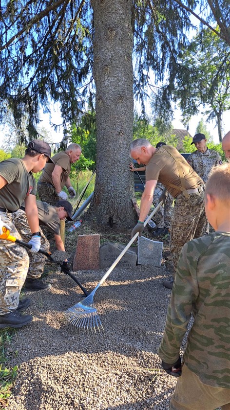 Sakopjot piemiņas vietas, J. Baldiņa uzslavēja Zemessardzes 31. kājnieku bataljona zemessargus, uzsverot, ka lielisks paraugs citiem bija Zemessardzes 31. kājnieku bataljona virsseržants, štāba virsseržants Aleksejs Solovjovs un Zemessardzes 31. kājnieku bataljona veterāns Juris Ločs, kā arī pārējie zemessargi, kuri strādāja kopā ar bērniem, izskaidrojot un mācot, kā kurš darbs veicams. “Bērni mācījās, kā uzstādīt pieminekli, piemiņas zīmi, rakt, pieskrūvēt un veikt citas praktiskās darbības, ko nevar iemācīties no grāmatām. Paaudžu un profesionālā sadarbība ir ļoti vērtīgs pienesums katram jaunietim viņa izaugsmē. Tas, ka viņi ir piedalījušies kādas konkrētas vietas iekārtošanā, veido attieksmi pret šo vietu un notikumu,” dienas beigās teica J. Baldiņa. Viņa atzina, ka jaunsargi ļoti čakli strādāja, un uzslavēja jaunsargu instruktori Inesi Marķitāni, kura ir izaudzinājusi pieklājīgus, izdarīgus un atbildīgus vienības jauniešus. “Viņi nāk ar ļoti izteiktu pašiniciatīvu, tādēļ bija ļoti patīkami strādāt kopā,” teica J. Baldiņa.
