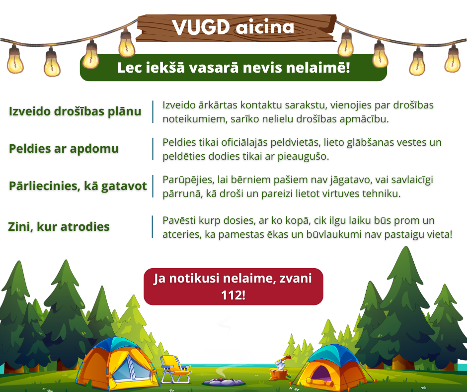 • Sarīkojiet nelielu drošības apmācību – ar bērniem pārrunājiet sešus ar drošību vasarā saistītus jautājumus.
