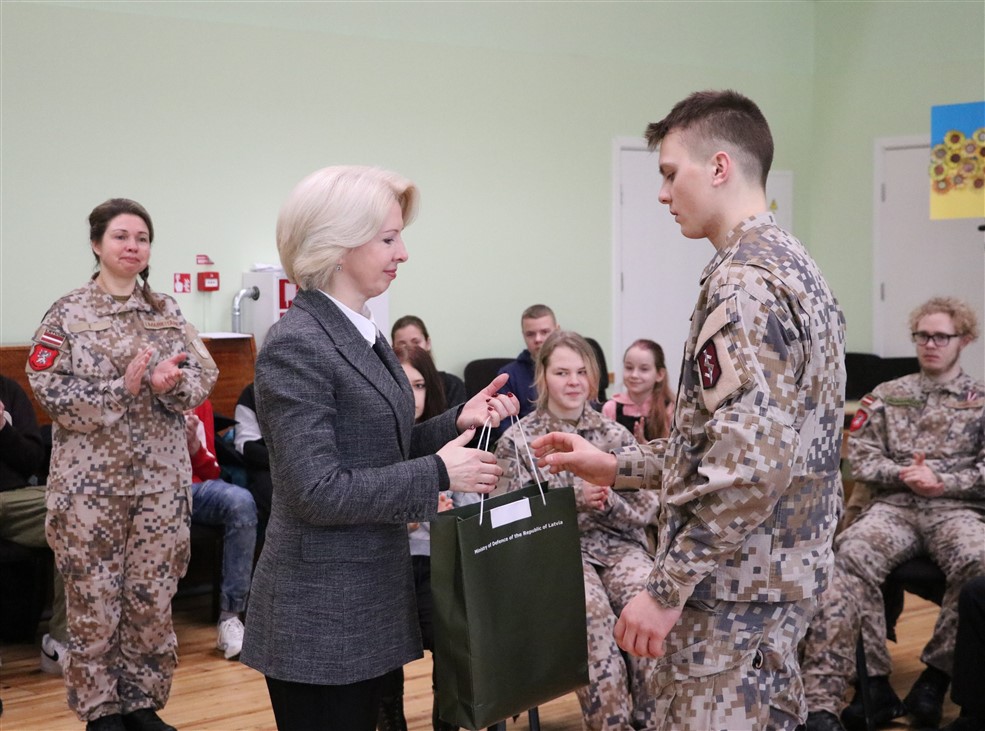 I. Marķitāne pastāstīja, ka pašlaik organizācijā ir gandrīz simts dalībnieku, uz tikšanos ar ministri arī bija ieradies kupls skaits – 50, visi, kuri varējuši atbrīvoties no mācībām. “Šādas tikšanās ar nozares amatpersonām jaunsargiem ir ļoti svarīgas, jo tas ir atbalsts viņu izvēlei un iedvesma turpināt iesākto,” vērtē I. Marķitāne, kura bija parūpējusies par svinīgu brīdi, pateicoties jauniešiem ar īpašiem goda rakstiem.