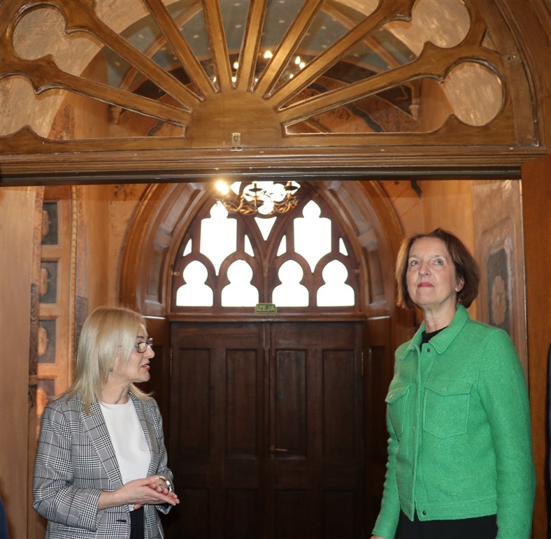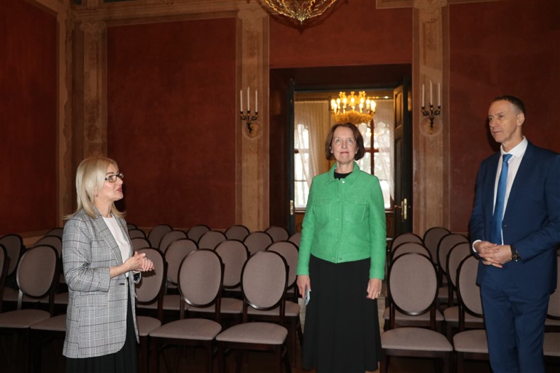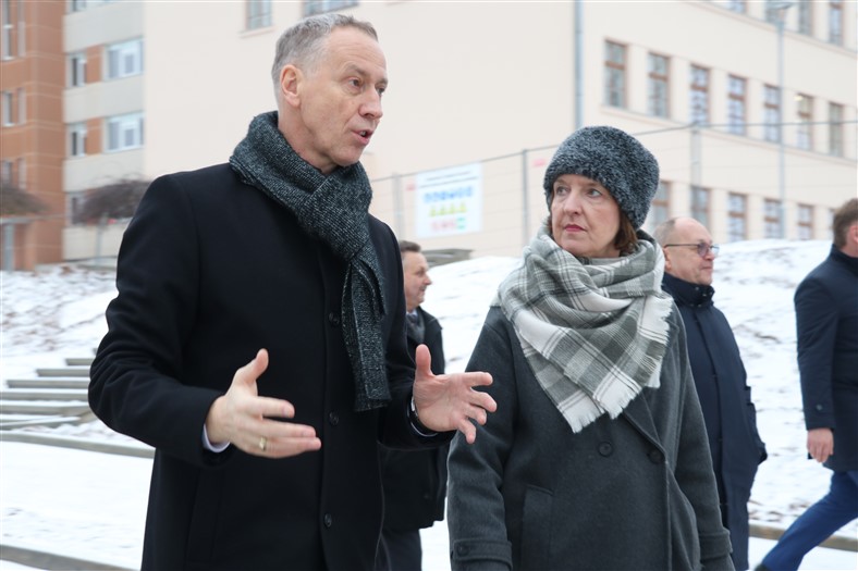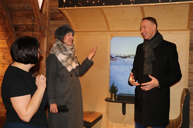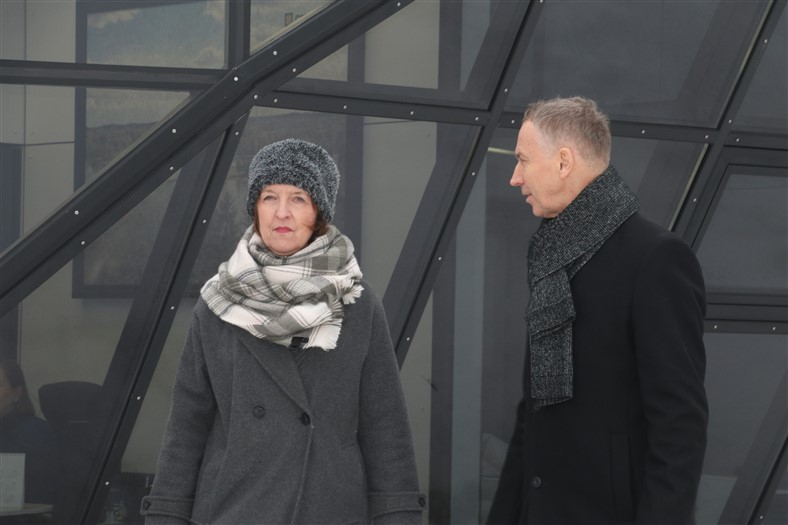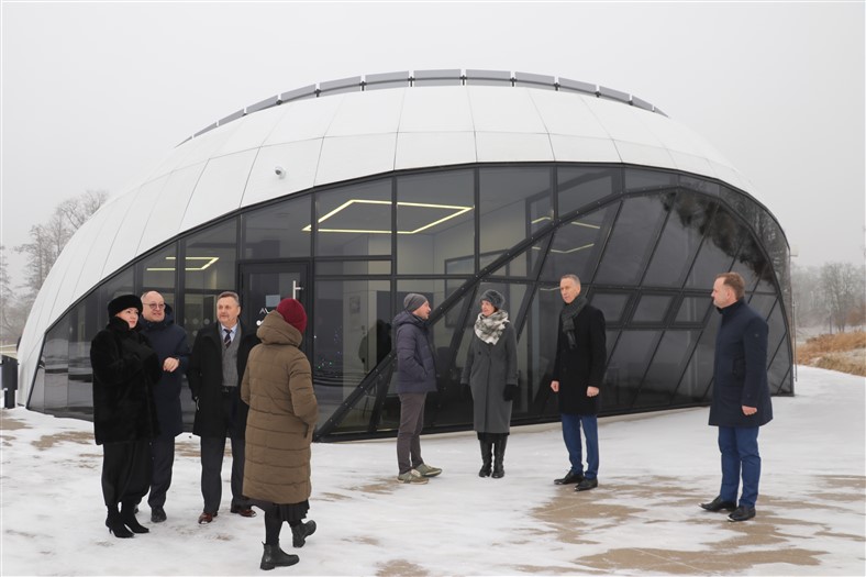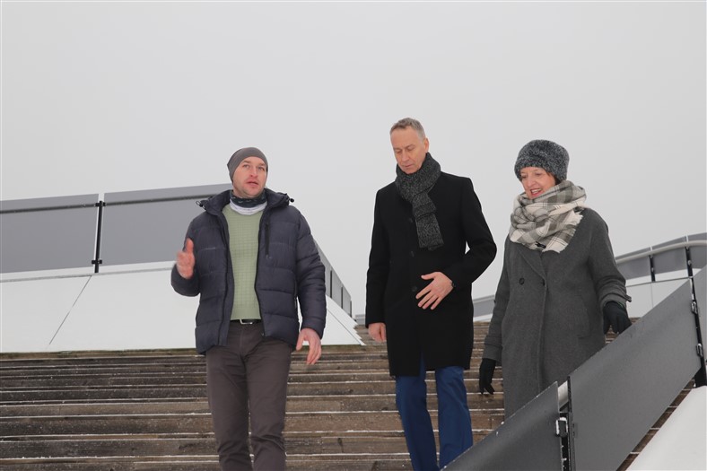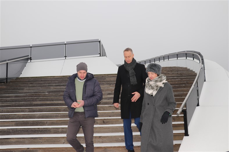 Tāpat delegācija ministri aizveda pastaigā uz Pilssalu, kura jau mazliet varēja lepoties ar sniegu, radot ainavisku gleznojumu uz Alūksnes ezera ledus. Ministre apskatīja ALJA ēku un novērtējot ainavu, kopā ar Alūksnes novada vadītāju Dzintaru Adleru vienojās kopīgai pašbildei.