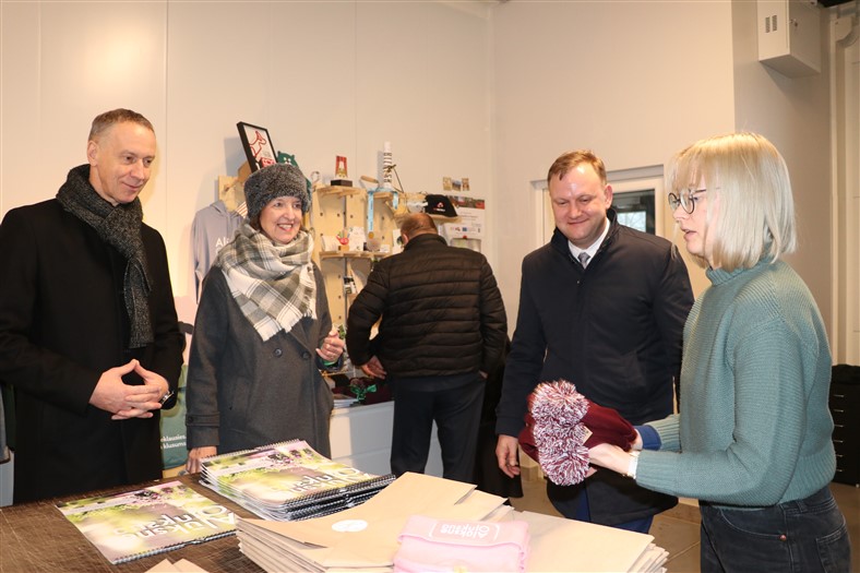 Pārsteigumi par mazo uzņēmumu lielajiem darbiem ministri sagaidīja Biznesa stacijā, kur viņu uzņēma “Impress Print” vadītāja māksliniece Elīna Salaka. E. Salaka tobrīd gatavojās Alūksnē gaidāmajam Ziemassvētku tirdziņam, demonstrējot viešņai, ko tik nevar paveikt “Impress Print” darbnīcās, katru lietu padarot personalizētu un līdz ar to īpašu. Visiem patika ziemas cepures ar Alūksnes novada logotipu, – cerībā, ka ziema tās galvaspilsētā Alūksnē drīz būs klāt. Ministre atzinīgi novērtēja pašvaldības atbalstu mazās uzņēmējdarbības attīstībai Biznesa stacijas veidolā.