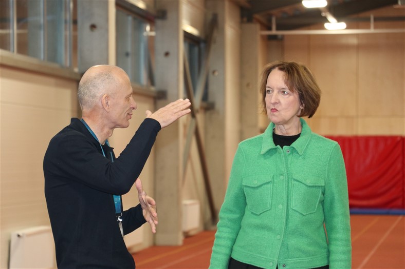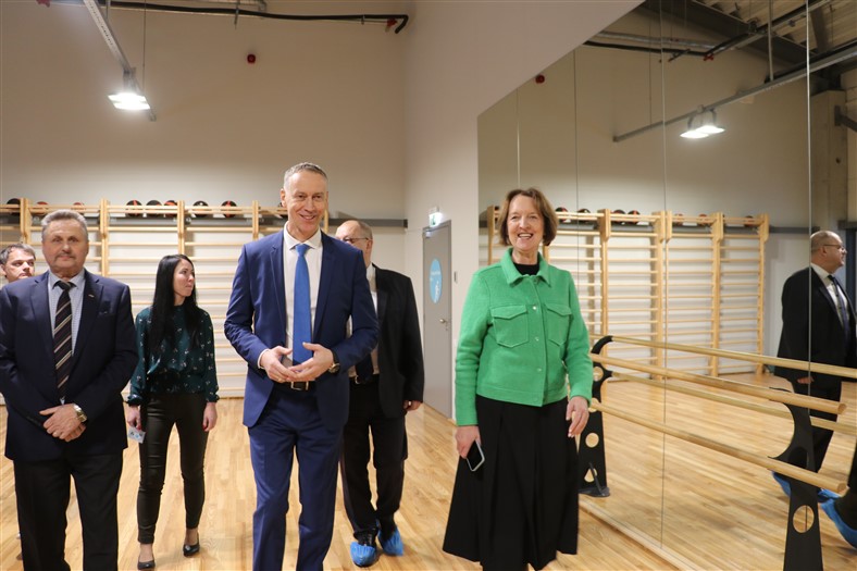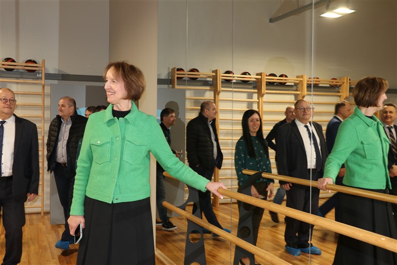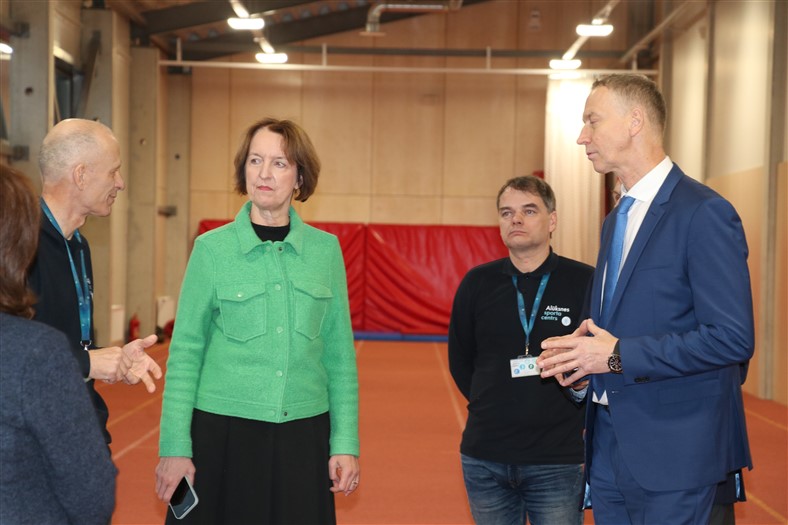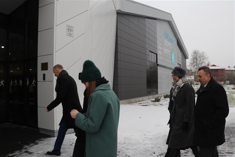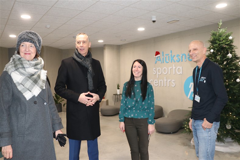 Vizīte turpinājās ar publiskās ārtelpas attīstības projekta virzības apskati Glika ielā 10, kā arī Alūksnes Sporta centra apskati. Tur ar plašajām iespējām sporta skolas audzēkņiem un aktīvajiem iedzīvotājiem iepazīstināja sporta centra vadītājs Guntis Kozilāns un Alūksnes sporta skolas direktora vietniece Elīna Akmentiņa.