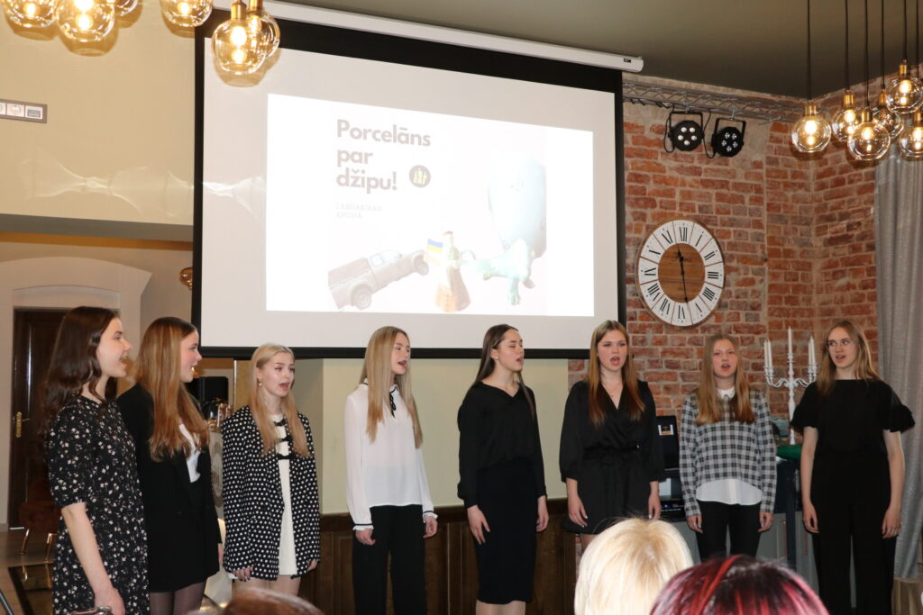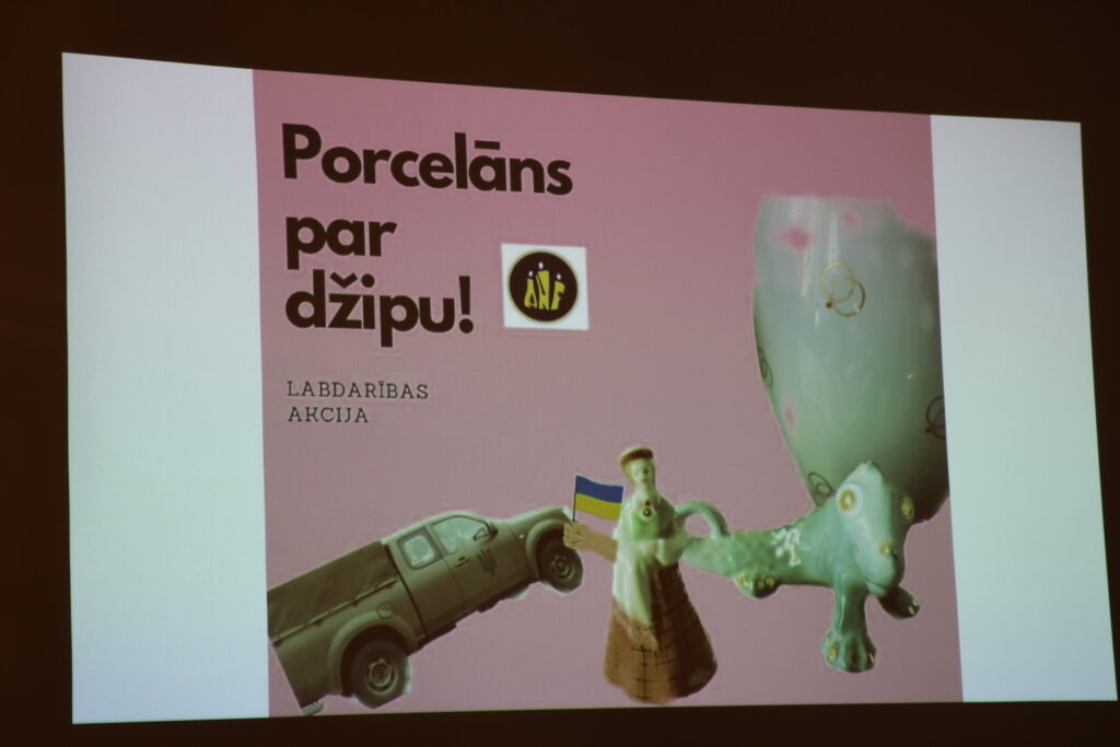 Fonda pilngadības svētkos noritēja Sanitas Eglītes atraktīvi vadītā porcelāna (un ne tikai) izsole. Tās dalībnieki bija ļoti dāsni, vakara gaitā saziedojot 2434 eiro džipam Ukrainas aizstāvjiem. Kopumā šim mērķim pašlaik ir saziedoti 3934 eiro.
