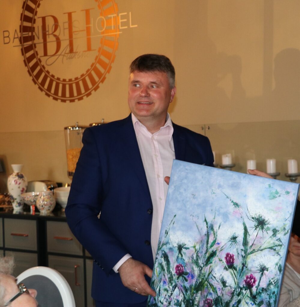 Taču tā nav tikai dzimšanas diena – fonds parasti savus svētkus svin, rīkojot kādu labdarības akciju. Šoreiz tā sadarbībā ar alūksnieti Pāvelu Čorniju ir akcija “Porcelāns pret džipu”, kurā jubilejas viesi ziedo nu jau piektajam džipam Ukrainas aizstāvjiem. 18 gadu laikā paveikts daudz labu darbu, iedvesmojot sabiedrību veidot arvien labāku pasauli mums apkārt. Par to šodien fonda vadītājai Dzintrai Zvejniecei un organizācijas labajiem gariņiem – darbiniekiem un brīvprātīgajiem – teica paldies Alūksnes novada pašvaldība, uzņēmēji, nevalstiskās organizācijas, citi sadarbības partneri. Viesos bija arī biedrība “TEV” – lielākā labdarības organizācija, kas sniedz humāno atbalstu Ukrainai. Biedrības pārstāvji atzinīgi novērtēja AANF paveikto Ukrainas atbalstam, atzīstot, ka arī mazs cinītis var gāzt ļoti lielu vezumu.