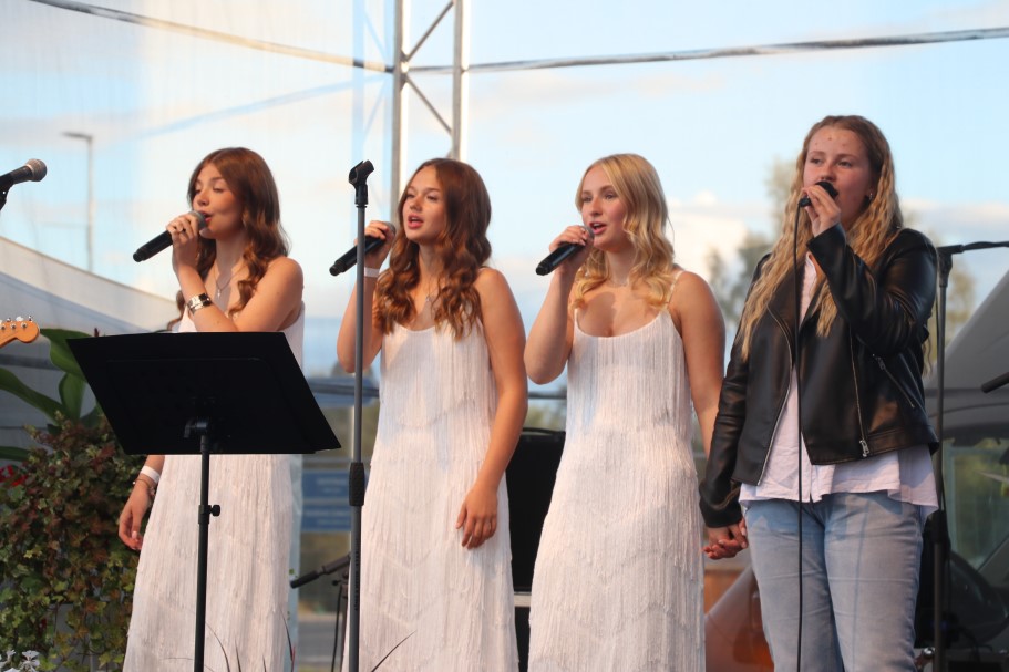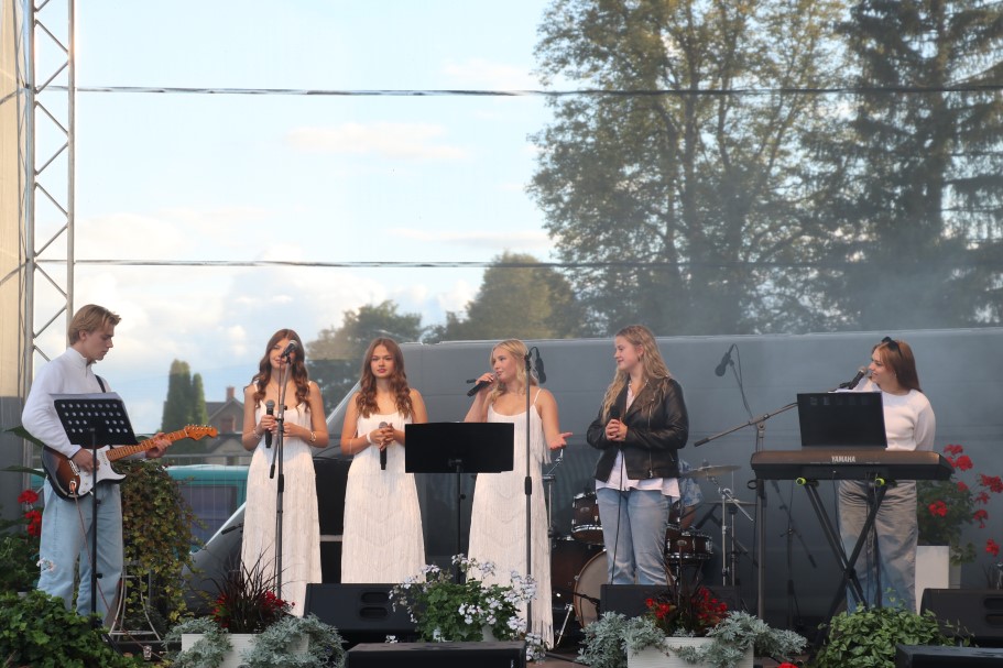 Apes pilsētas svētkos sestdienas vakarā apmeklētāji baudīja muzikālu sveicienu, ko sniedza Valmieras Viestura vidusskolas estrādes ansamblis “Frekvence”.