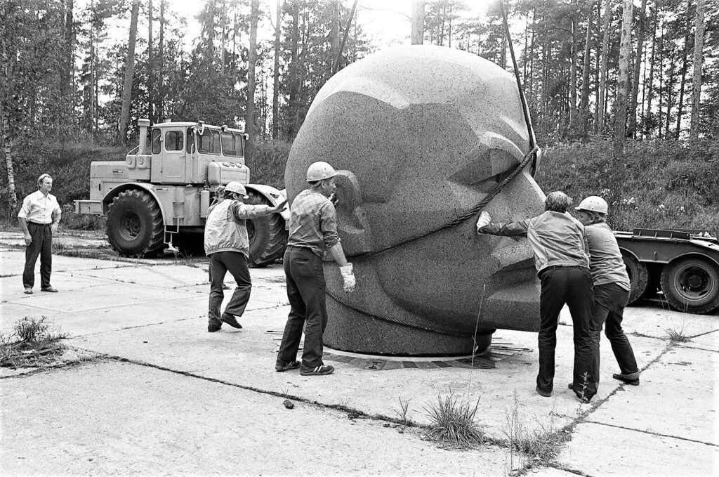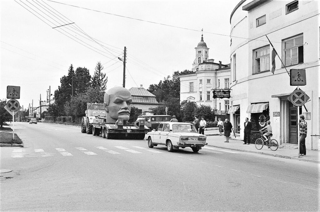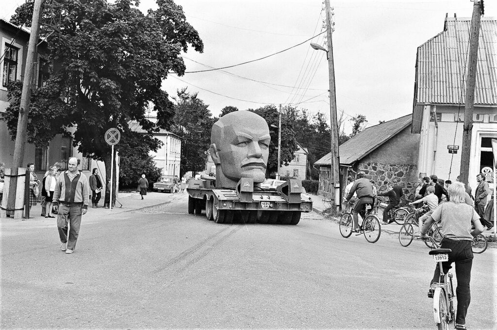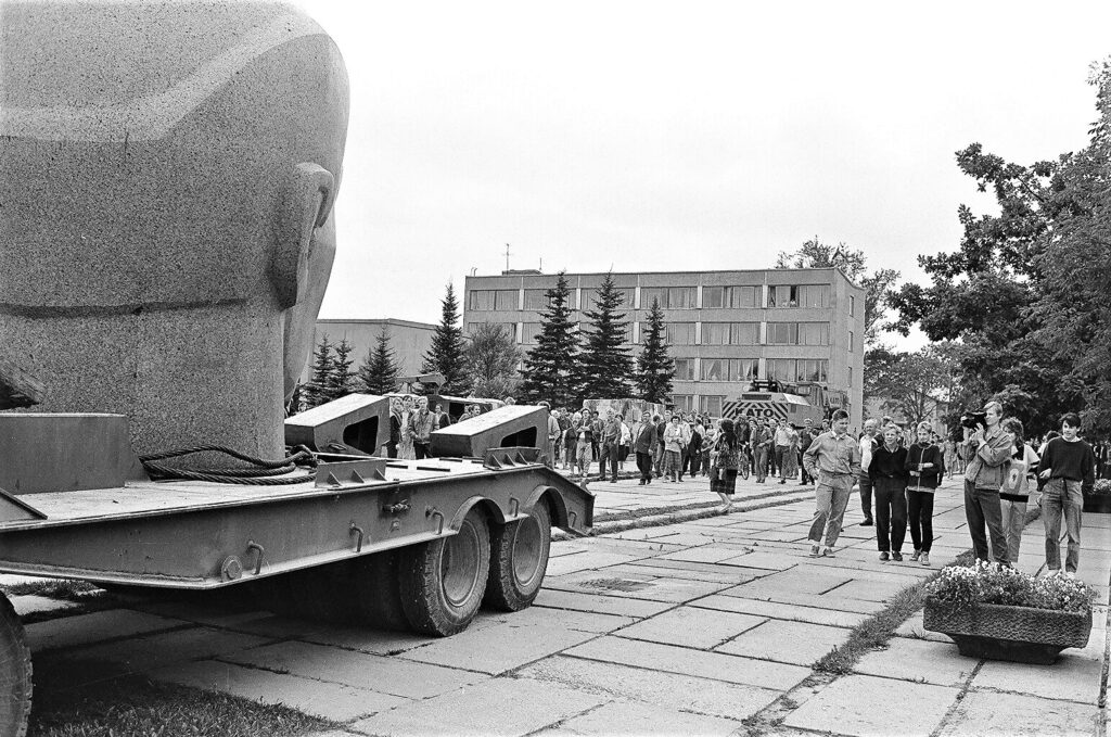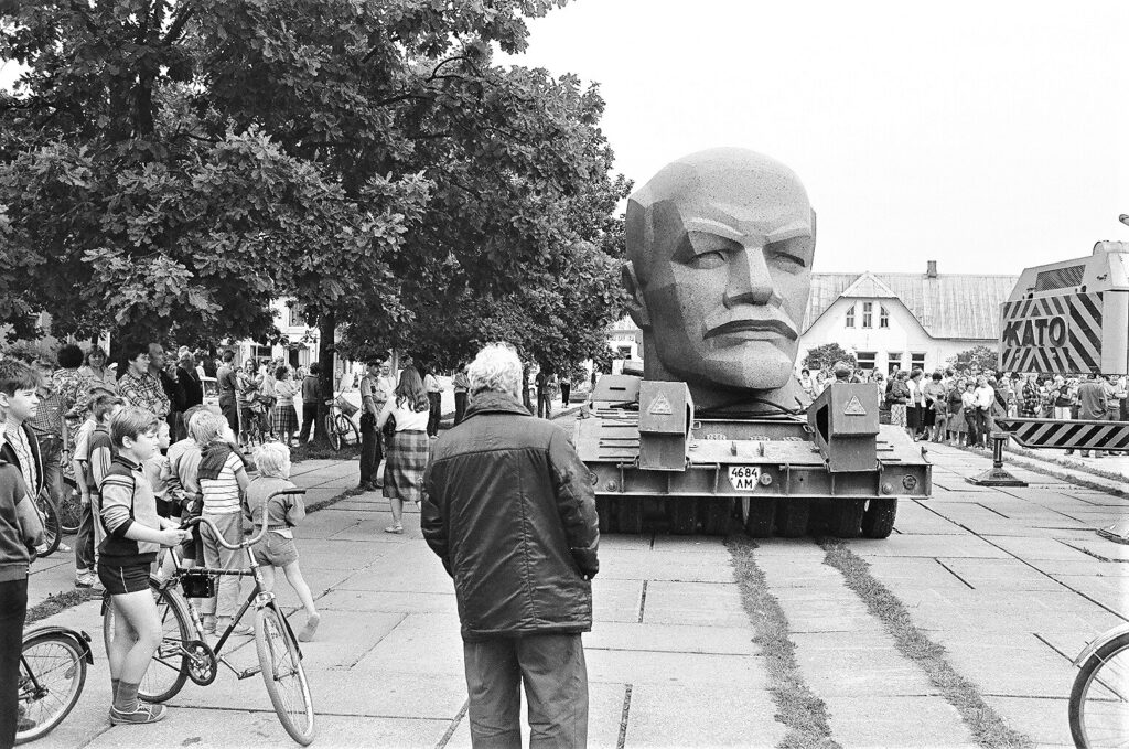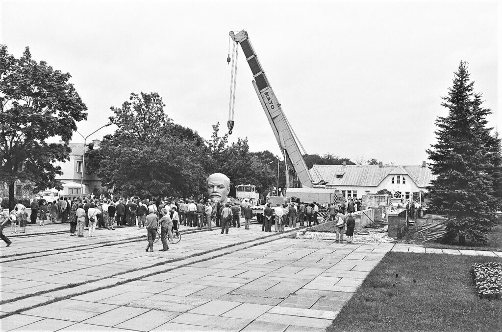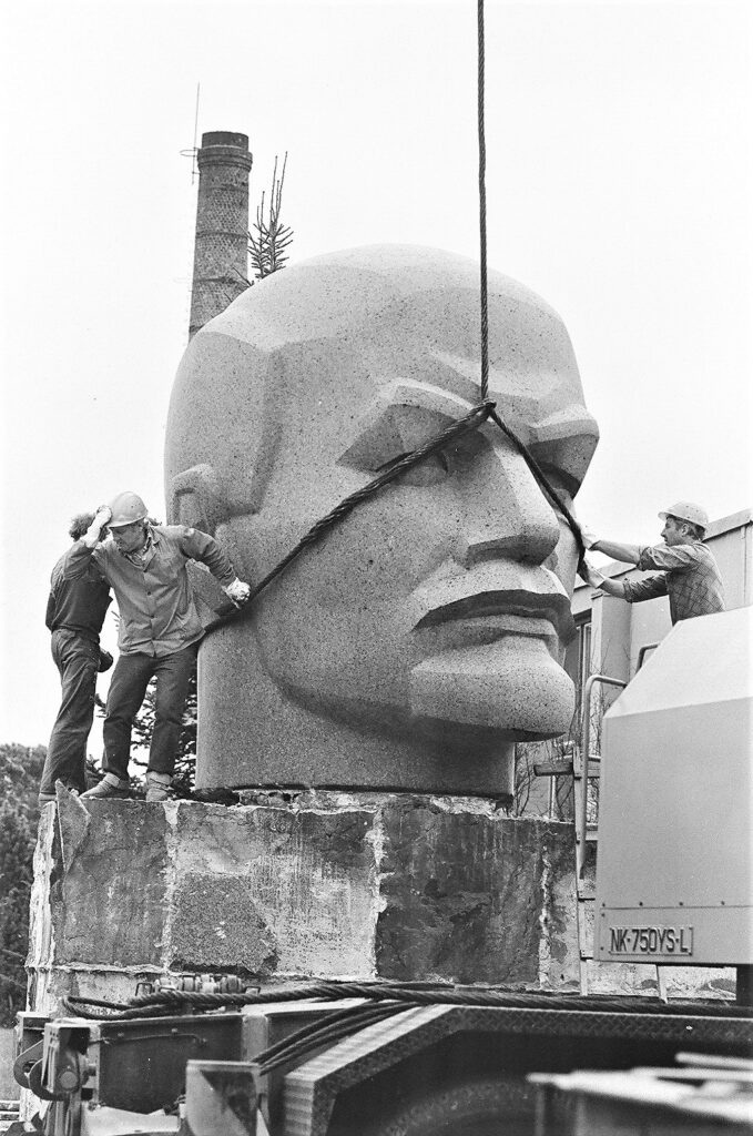 Attēlos – “Ļeņina galvas” demontāža 1991. gada 29. augustā, ceļš uz jauno atrašanās vietu un – jaunā mājvieta kodolraķešu bāzes teritorijā Zeltiņos.