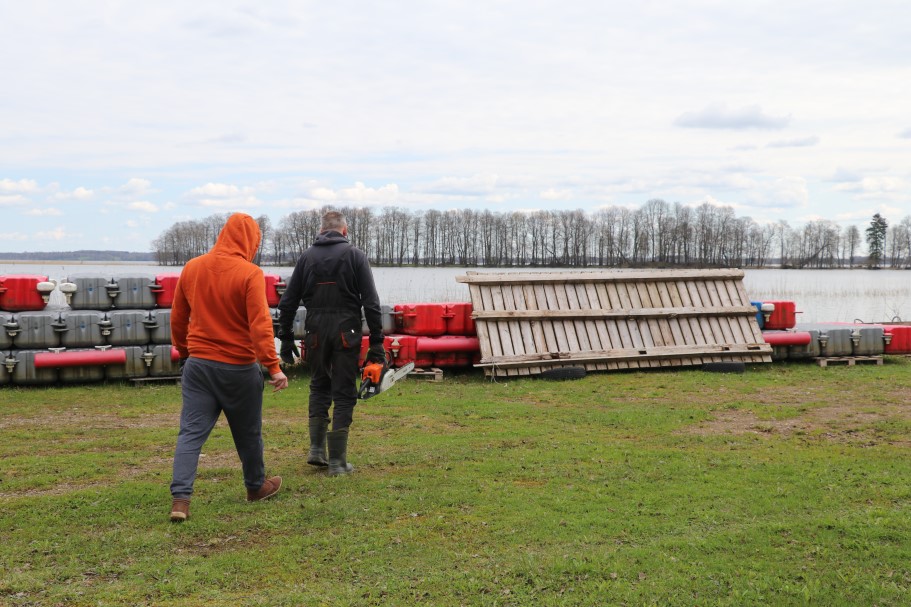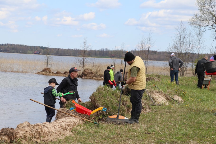 Savukārt, otrā ezera krastā darbojās Alūksnes novada ūdens motosportisti. Vispirms sakārtoja vietas, kur ledus bija izspiedis krasta malas, bet pēc tam gatavoja laipu, lai ezerā varētu ielaist pontonus. Vairāk par lielo sestdienas talku lasiet 30. aprīļa laikrakstā “Alūksnes un Malienas Ziņas.”