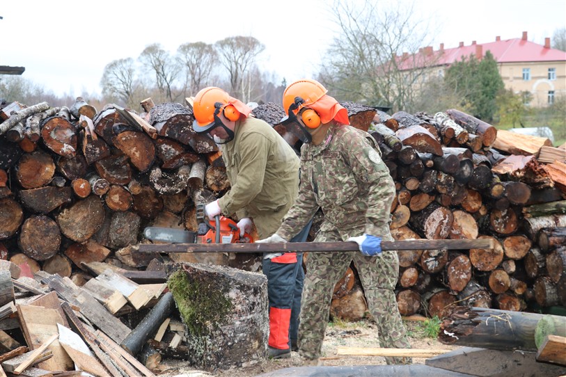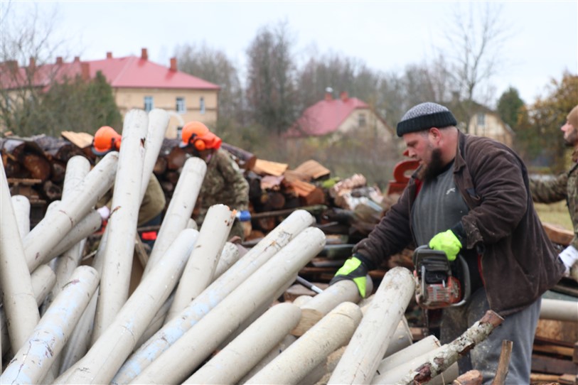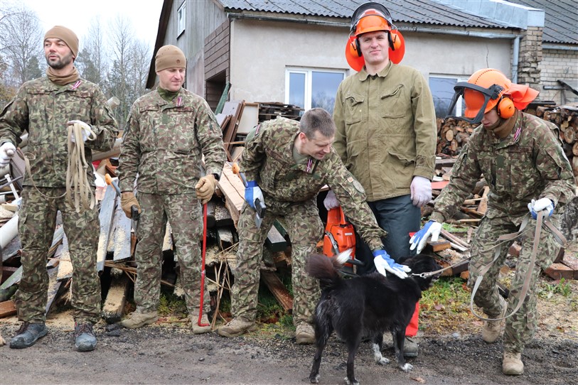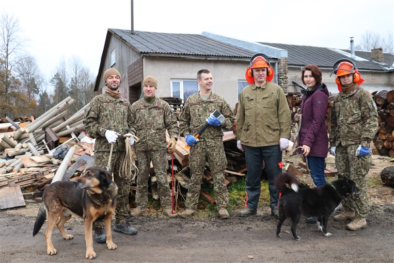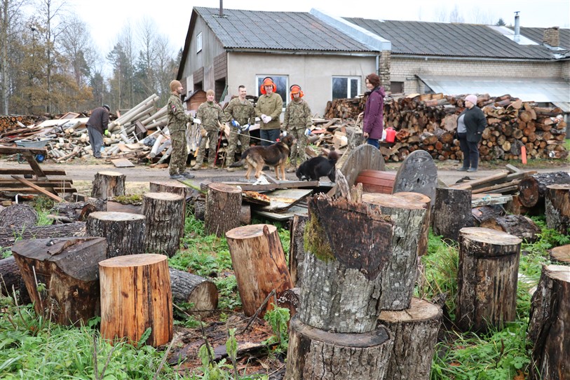 Lāčplēša diena ir valsts svētki, kas lielākajai daļai saistās ar patriotiskām norisēm – Lāčplēša dienas parādi, apbalvošanas ceremonijām, neatkarības cīņās kritušo karavīru godināšanu, vēsturiski izzinošiem pasākumiem un skaistiem latviskiem koncertiem. Nacionālo Bruņoto spēku Zemessardzes 31. kājnieku bataljona zemessargi šo Lāčplēša dienu noteikti atcerēsies citādāku, nekā ierasts. Viņi šonedēļ rīko malkas sagatavošanas talku Alūksnes dzīvnieku patversmē “Astes un Ūsas”, lai šeit nonākušajiem ķepaiņiem gaidāmajā ziemā būtu silti. Un kurš gan teicis, ka tas nav patriotiski – palīdzēt tiem, kuri paši sev nevar. Biedrības “Astes un Ūsas” vadītāja Elīna Dambe un patversmes brīvprātīgie ir pateicīgi mūsu lāčplēšiem par šo nozīmīgo palīdzību, jo, kā saka Elīna, – vieni viņi netiktu galā. Paldies talkas dalībniekiem par nesavtīgajām rūpēm, lai visiem skaisti Valsts svētki! Attēlos – bataljona zemessargi Selga Circene, Aleksejs Solovjovs, Jānis Umurs, Jānis Supe un Aigars Ribušs talkas starpbrīdī ar patversmes “astaiņiem”, kā arī kaķu mājas iemītnieki, kuri joprojām gaida savus jaunos saimniekus.