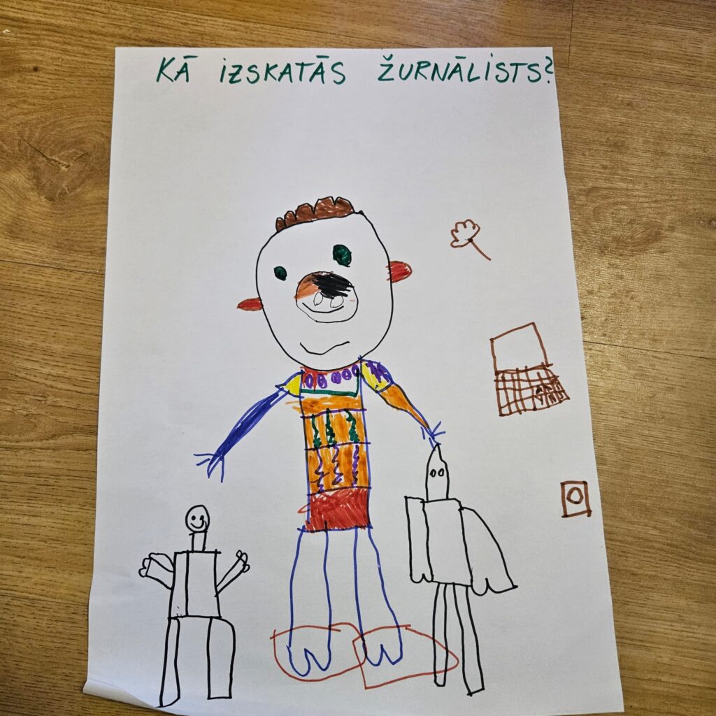 Viens no uzdevumiem bērniem ir uzzīmēt, kāds izskatās žurnālists – mazo “Sprīdīšu” fantāzija ir neizmērojama – darbi sanāk krāšņi un skaisti!