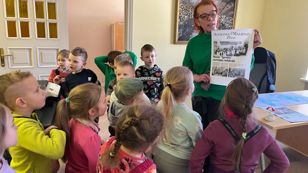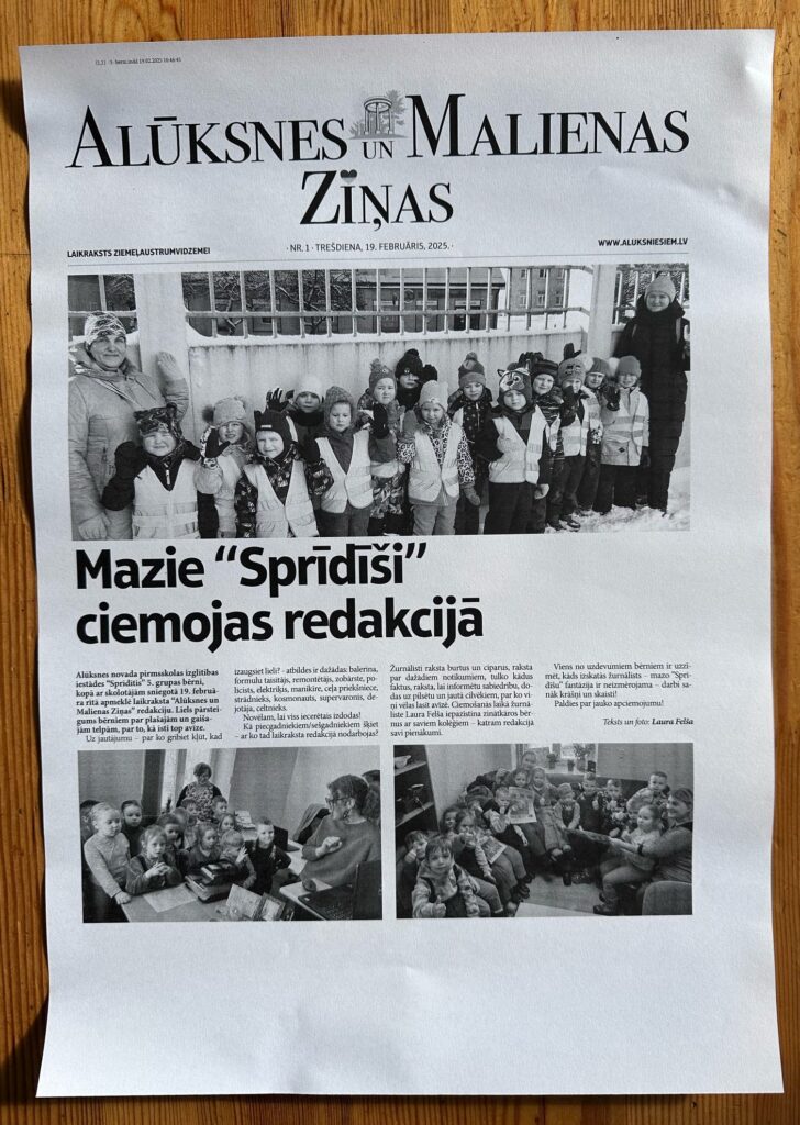 Alūksnes novada pirmsskolas izglītības iestādes “Sprīdītis” 5. grupas bērni, kopā ar skolotājām sniegotā 19. februāra rītā apmeklē laikraksta “Alūksnes un Malienas Ziņas” redakciju. Liels pārsteigums bērniem par plašajām un gaišajām telpām, par to, kā īsti top avīze. Interesanti pašiem klausīties savās balsīs, kad bērnu dziedātā dziesma ierakstīta diktofonā un pēc tam viņiem atskaņota.