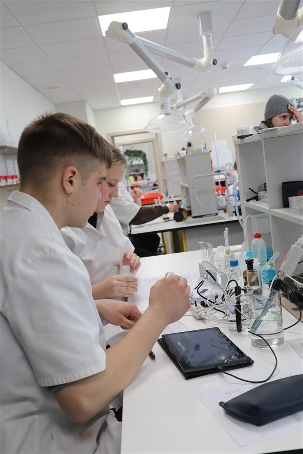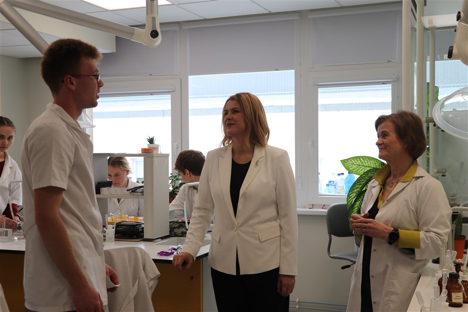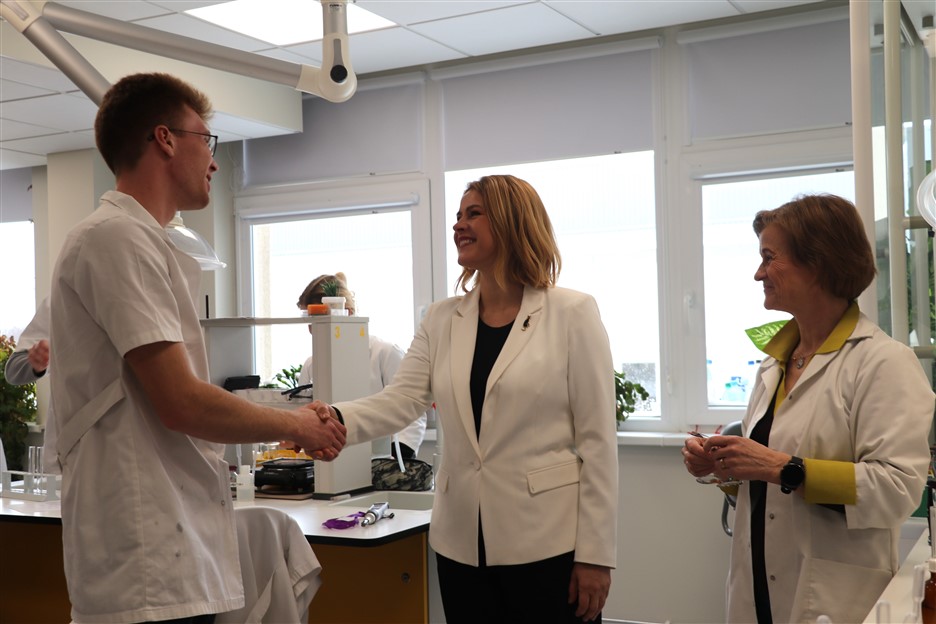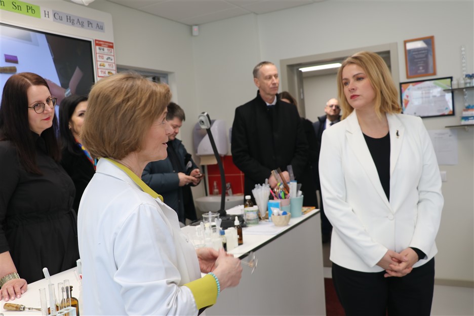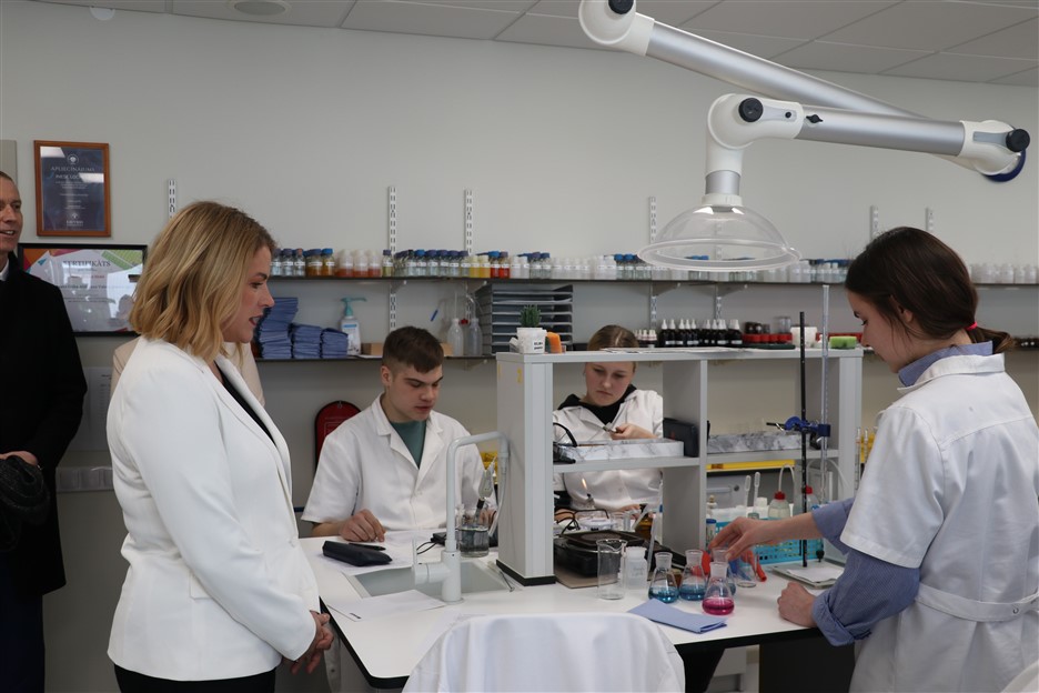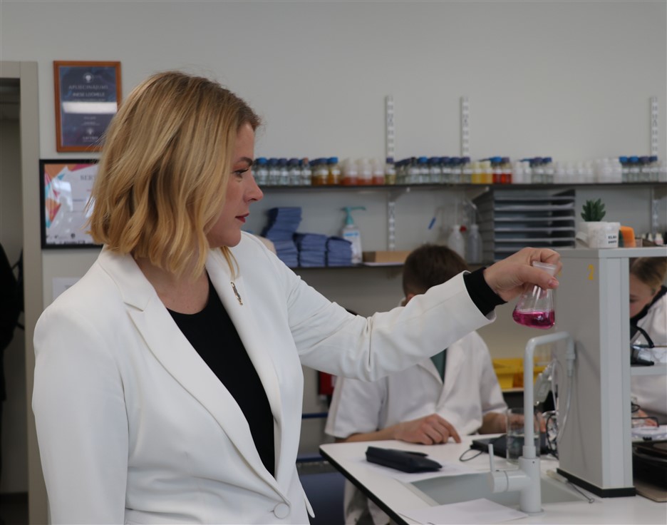 Īpašu uzmanību izpelnījās jaunā ķīmijas laboratorija, kur E. Siliņa iepazinās ar skolēniem un uzsvēra kvalitatīvas izglītības nozīmi: “Farmācija, uzturs, ilgtspējīga attīstība, pētniecība – tās ir jomas, kur Latvijai vajadzīgi zinātkāri un motivēti jaunieši. Man ir prieks, ka jums ir iespēja mācīties tik modernā vidē.”