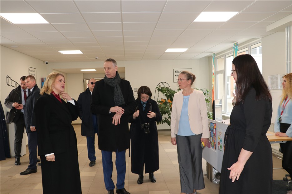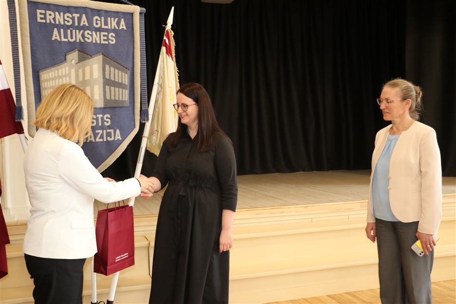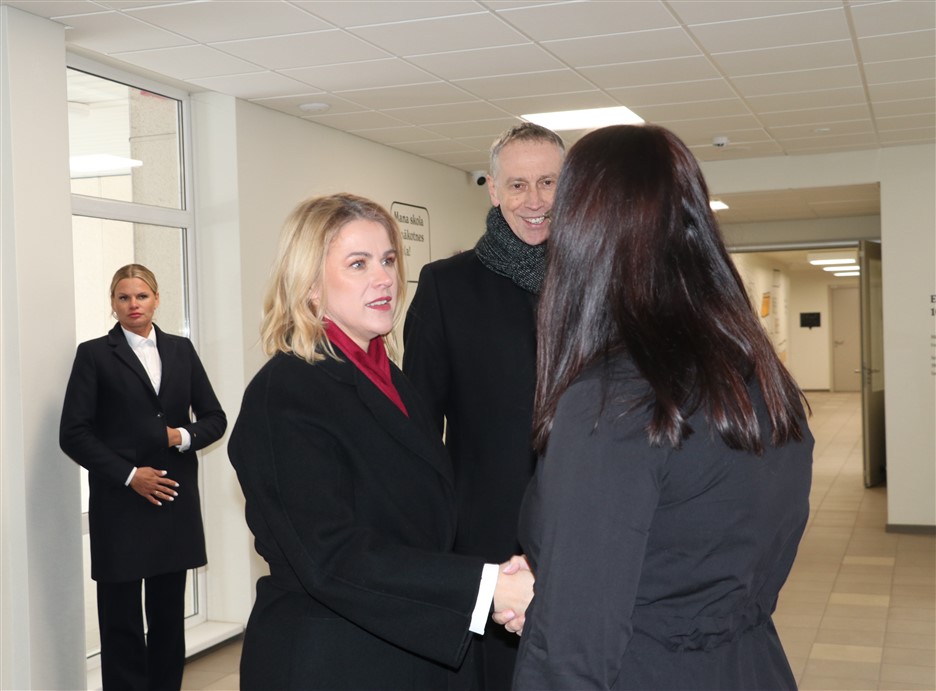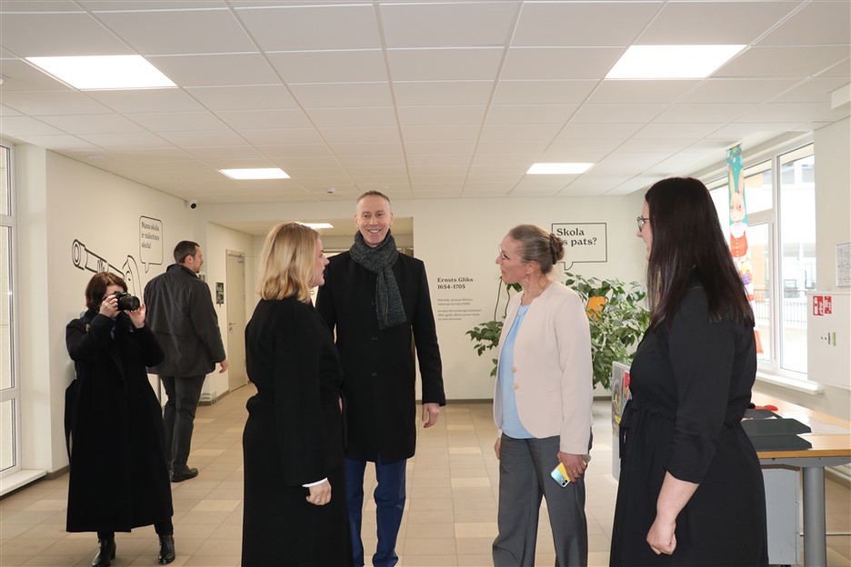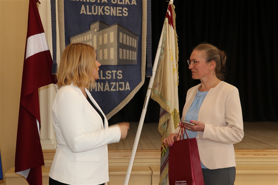 Vizītes ietvaros Ministru prezidente apmeklēja arī pārbūvēto Ernsta Glika Alūksnes Valsts ģimnāziju un Alūksnes vidusskolu, iepazīstoties ar modernizētajām mācību telpām un atjaunoto vēsturisko ēku, kur ieguldīti vērienīgi pašvaldības un Eiropas Savienības fondu līdzekļi.