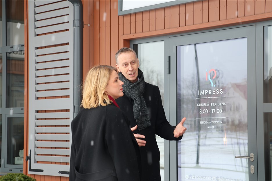 Vizītes turpinājumā Ministru prezidente tikās ar vietējiem uzņēmējiem – SIA “Impress print” vadītāju Elīnu Salaku un viņas kolēģēm, kuras ar pašvaldības atbalstu strādā ražošanas ēkā “Biznesa stacija”, kā arī eksportējošā kokapstrādes uzņēmuma SIA “4PLUS” ražotnes vadību. Ar ražotni premjeri iepazīstināja uzņēmuma pārstāvji Jānis Skulte un Zigmunds Dambis. E. Siliņa pauda ieinteresētību par uzņēmēju saražoto produkciju, kā arī atzinīgi vērtēja uzņēmēju vēlmi palikt un ar entuziasmu strādāt dzimtajā novadā.