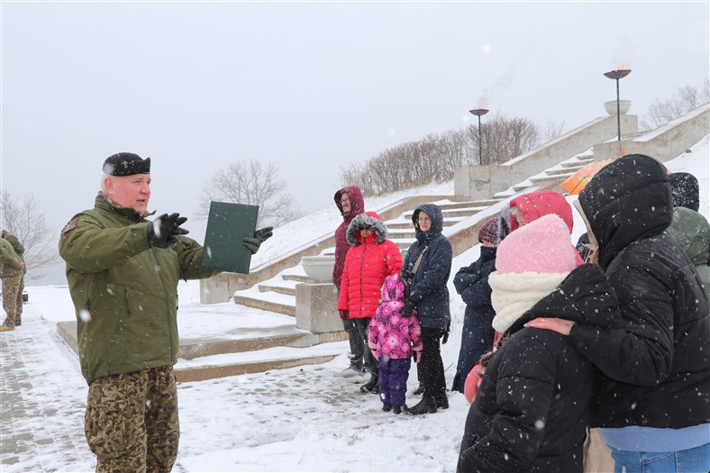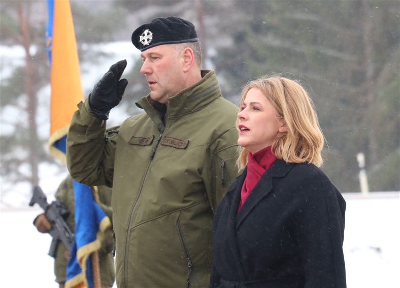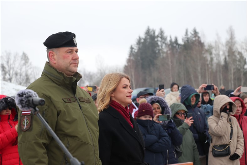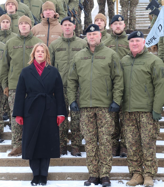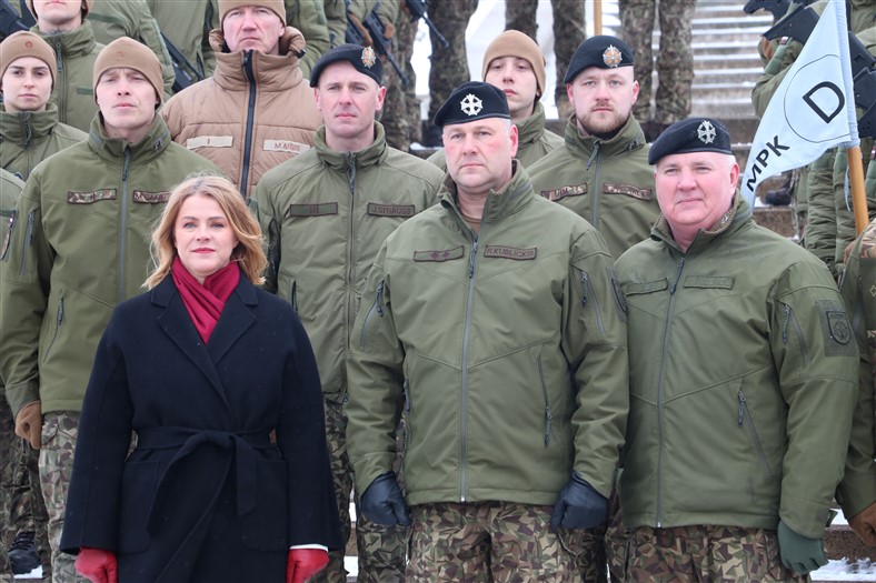 “Mūsdienu ģeopolitiskā situācija atgādina – drošība nav pašsaprotama. Latvija aktīvi piedalās starptautiskās drošības stiprināšanā, atbalstot Ukrainu un apmācot tās karavīrus. Bet mūsu pašu drošība sākas šeit – Latvijā. Valsts aizsardzība un spēks balstās uz tādiem cilvēkiem kā jūs,” uzrunājot jaunos karavīrus un viņu ģimenes zvēresta došanas ceremonijā, sacīja Ministru prezidente.