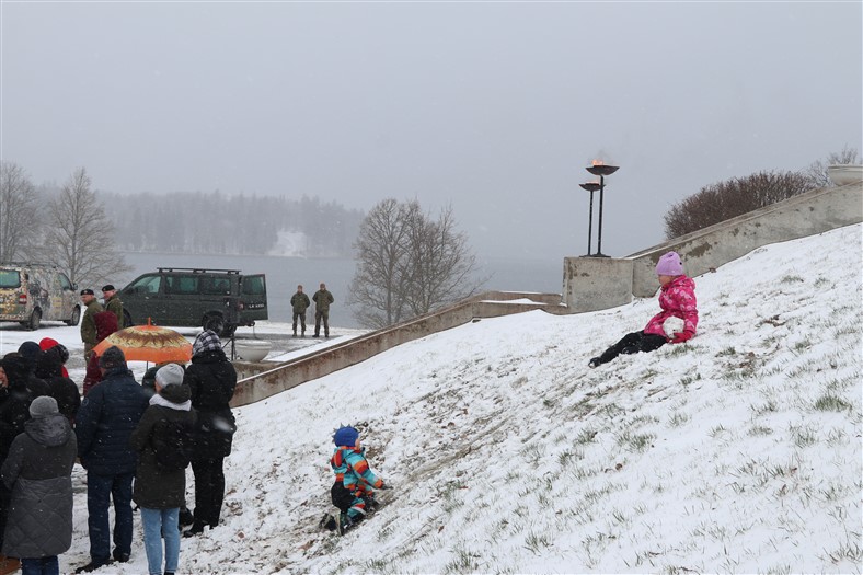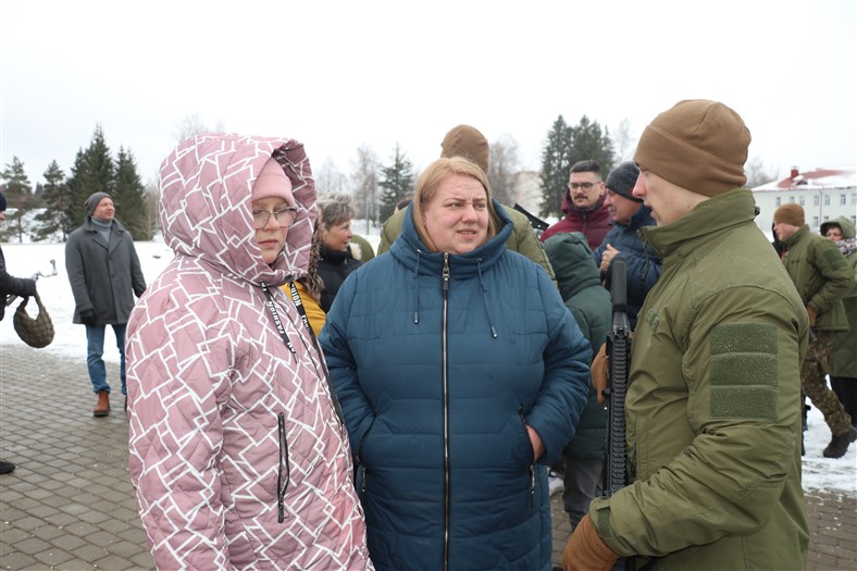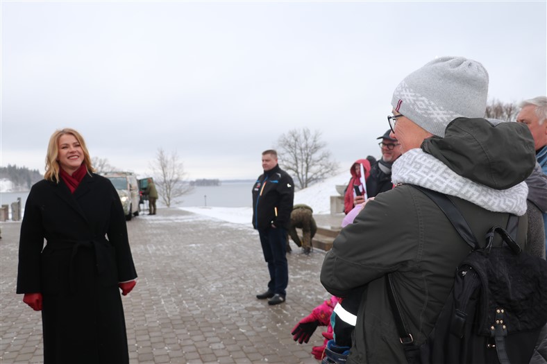 E. Siliņa uzrunāja topošos karavīrus, viņu ģimenes un NBS personālu, uzsverot, cik nozīmīgi ir stāvēt sardzē par mūsu valsts drošību. Pēc ceremonijas premjere aprunājās ar karavīriem, viņu ģimenēm, atsaucīgi nofotografējās ar visiem interesentiem. Topošie karavīri teica – ceremonija ir dubultsvinīga, ja to apmeklē tādas augstas valsts amatpersonas – to viņi vienmēr atcerēšoties. Tāpat zvēresta došanas ceremonija Alūksnē viņiem paliks prātā ar sniegputeni – kā jau tas ziemeļaustrumu pilsētā pieklājas.