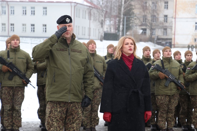 Foto: Ministru prezidente Alūksnē piedalās topošo karavīru zvēresta ceremonijā