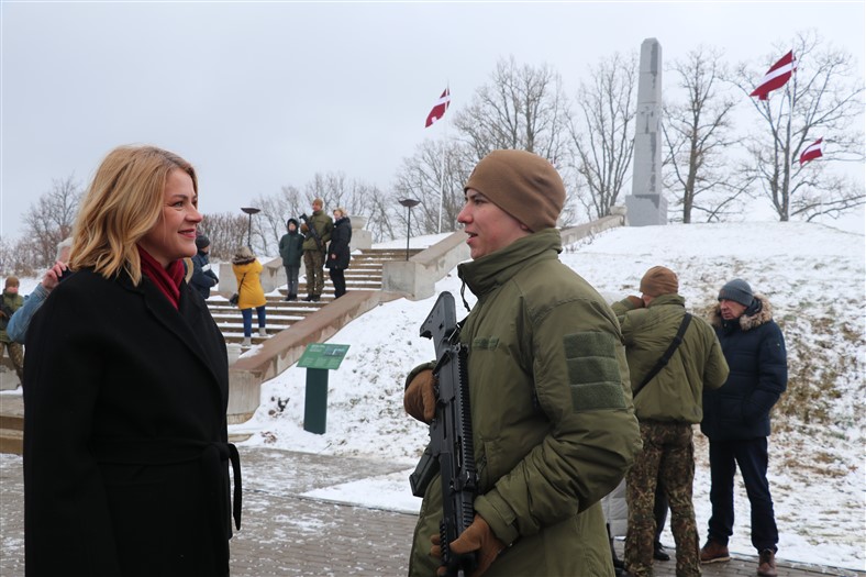 E. Siliņa uzsvēra, cik svarīgi ir ieguldījumi bruņotajos spēkos, profesionālā dienesta attīstībā, zemessargu un rezervistu apmācībā, kā arī militārās tehnikas un ekipējuma nodrošināšanā. “Valsts drošība un aizsardzība ir valdības prioritāte,” uzsvēra Ministru prezidente.