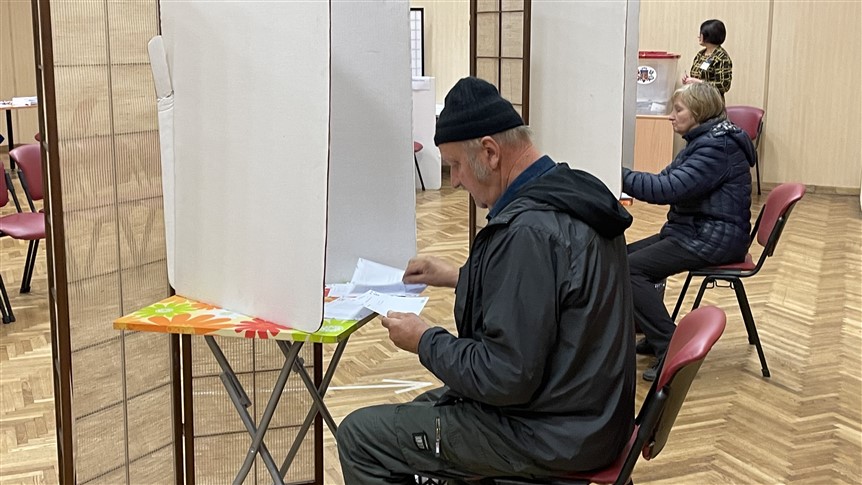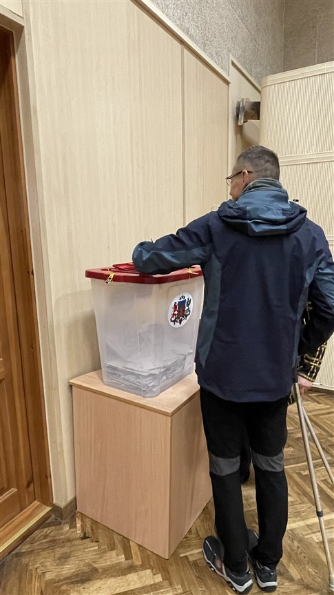 Foto: Vēlēšanu iecirkņi skaita balsis