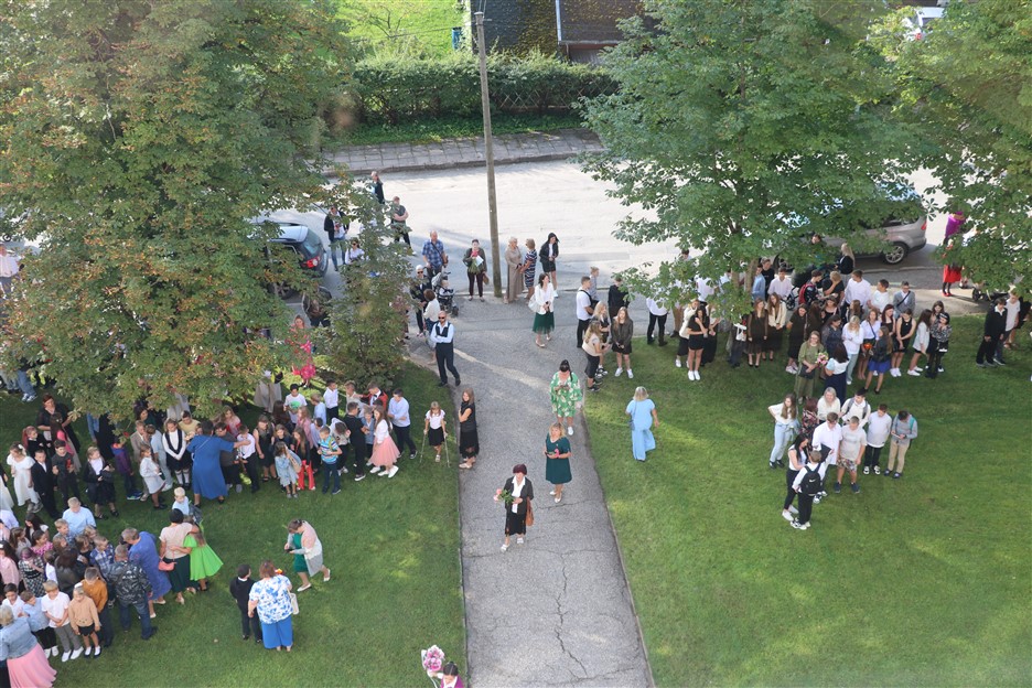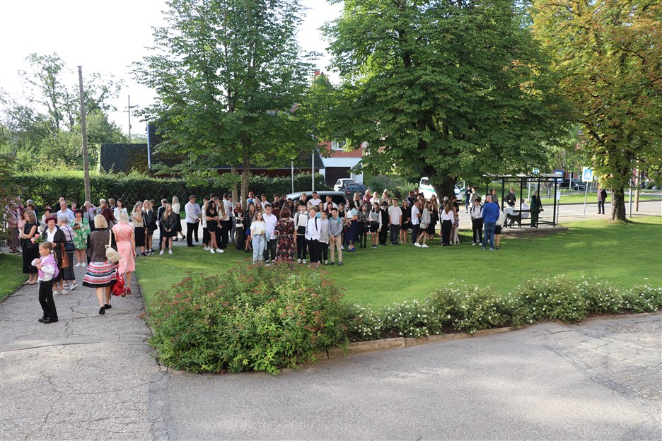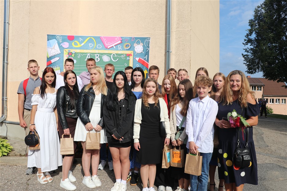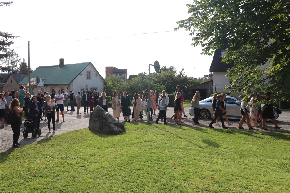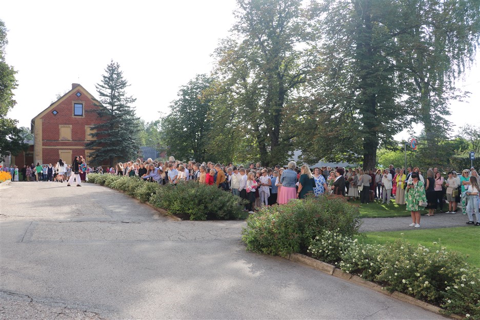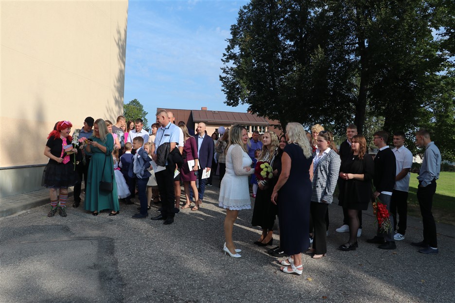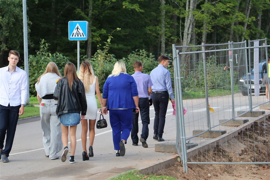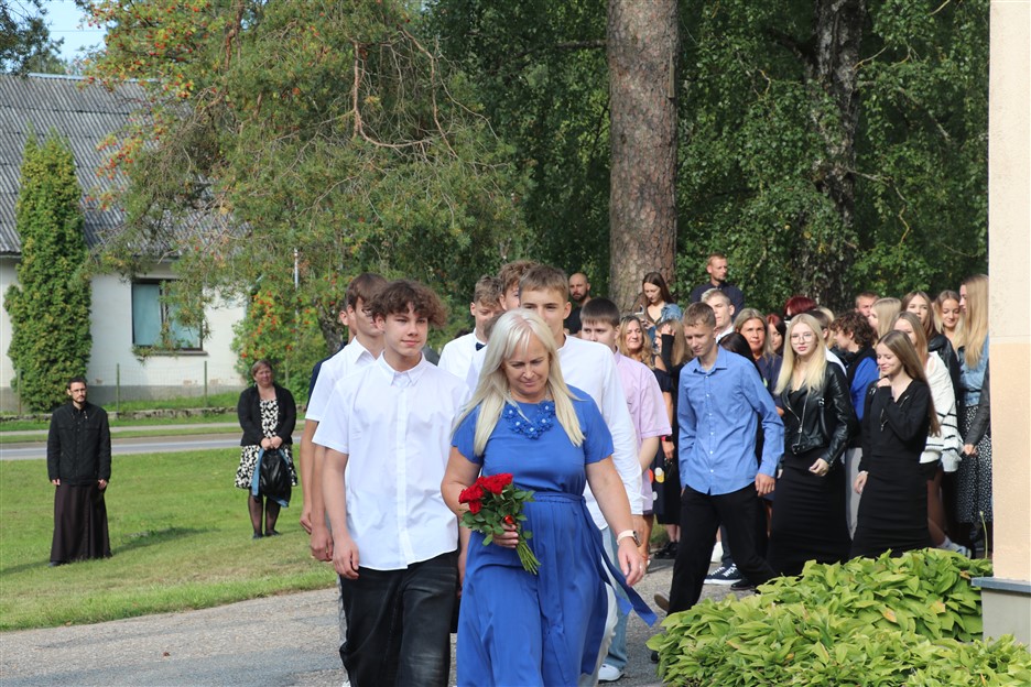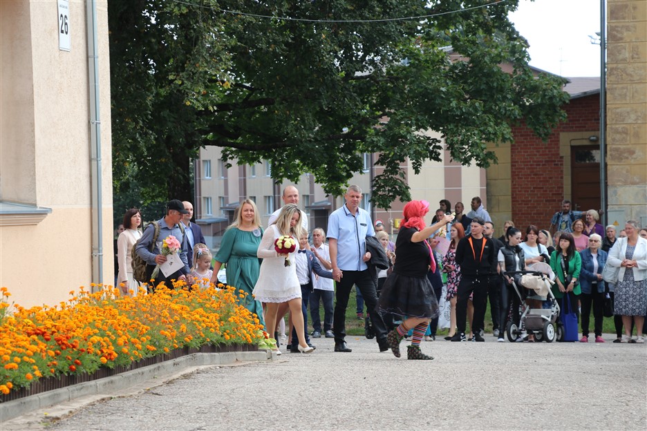 Alūksnes vidusskolas skolēni pulcējas skolā Lielā Ezera ielā, lai atzīmētu mācību gada sākumu. Kopā Alūksnes vidusskolā šogad mācās 912 skolēni. Skolā strādās 83 skolotāji, 29 tehniskie darbinieki.
