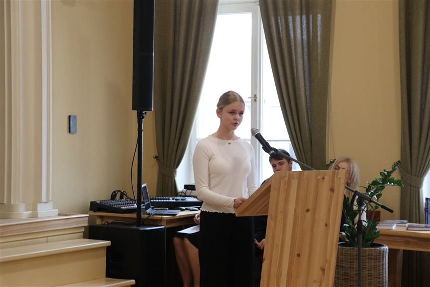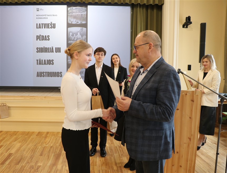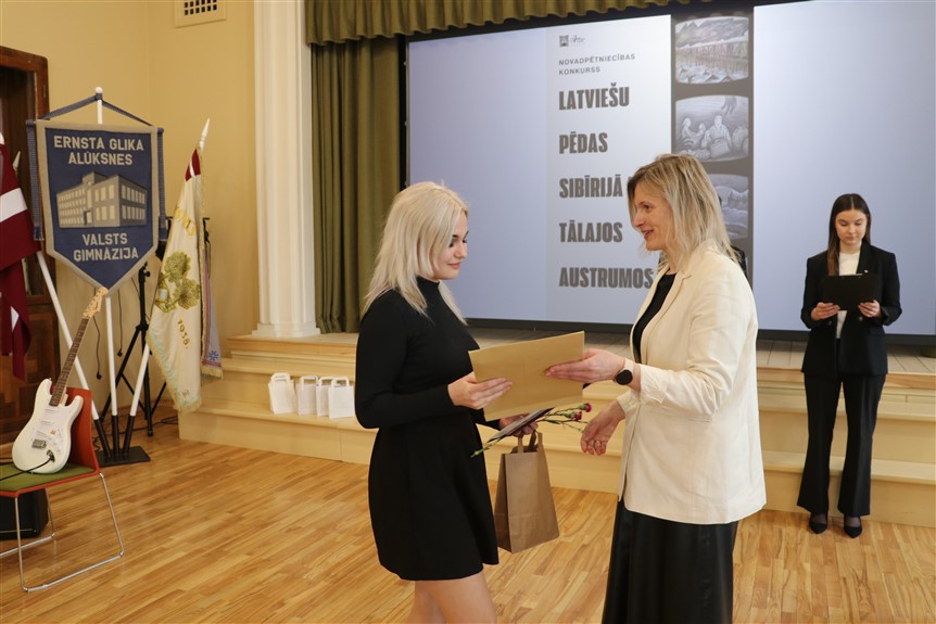 Lai labāk izprastu vēstures notikumus, kas saistīti ar latviešu izsūtījumiem uz Sibīriju, Ernsta Glika Alūksnes Valsts ģimnāzijas zālē šodien septiņi skolēni prezentēja savus pētnieciskos darbus konkursā “Latviešu pēdas Sibīrijā un Tālajos Austrumos”. Tāds izveidots ar nolūku veicināt skolēnu interesi par Latvijas iedzīvotāju likteņiem dažādos vēstures posmos. Tā ir iespēja jauniešiem padziļināti iepazīt un izprast vēstures notikumus, veicinot cieņpilnu attieksmi pret pagātni un rosinot patriotisma jūtas. Kā pasākumā teica Alūksnes novada muzeja Izglītojošā darba un darba ar apmeklētājiem vadītāja Jolanta Baldiņa, ir gandarījums apzināties, ka, neraugoties uz 16 gadus ilgo pētniecības pieredzi, šis konkurss joprojām ir saistošs un turpina rosināt interesi par vēstures izzināšanu.