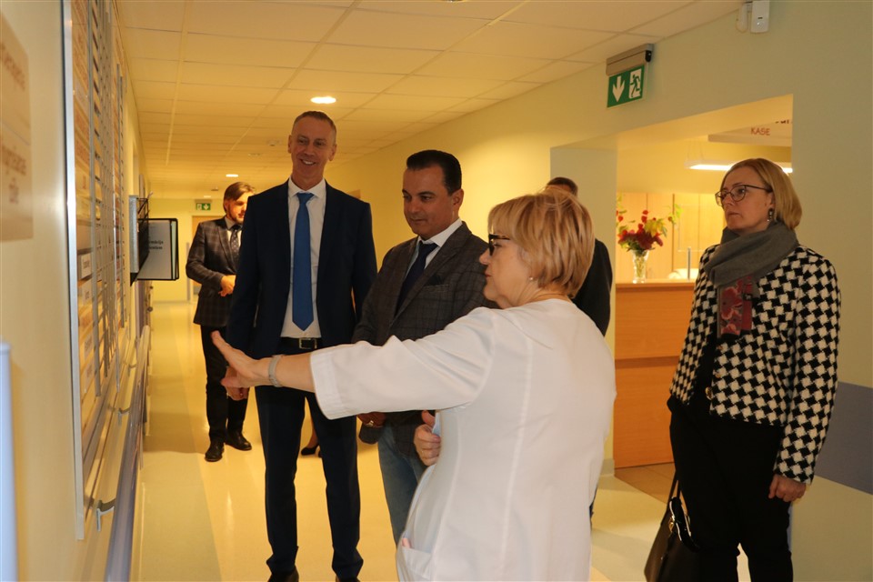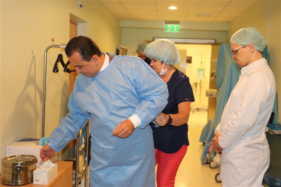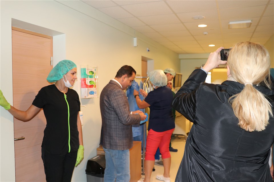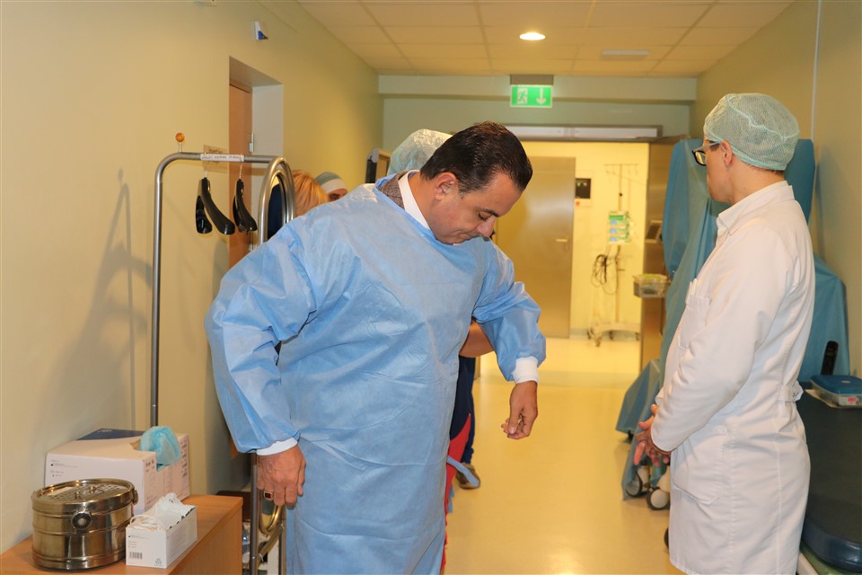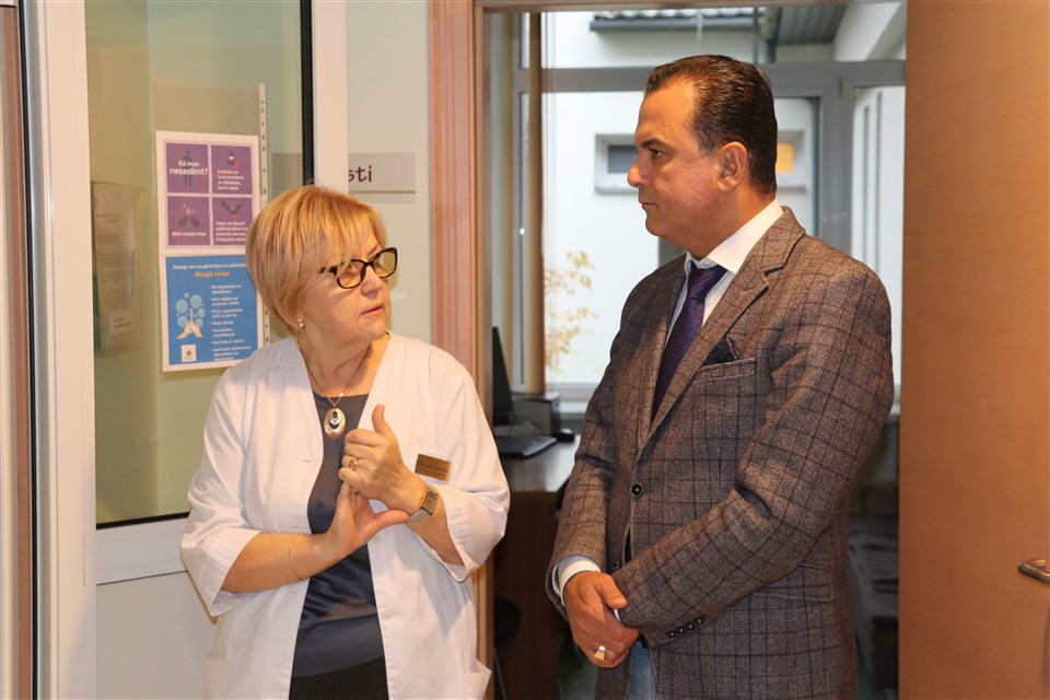 Ministrs apskatīja Terapijas un Ķirurģijas nodaļas, kā arī Uzņemšanas nodaļu, ambulatoro daļu un ultrasonogrāfijas kabinetu, pabija operāciju zālē. Iegriezās jaunajā rehabilitācijas nodaļu, kur bija iespēja redzēt, kā strādā speciālisti rehabilitācijas zālē. Visās nodaļās viņš tikās ar ārstiem un medicīnisko personālu. Ministram bija tikšanās arī ar jaunajiem ķirurgiem Edgaru Perevertailo, Ernestu Kasparsonu un Jevgeniju Demičevu. Tā kā H. Abu Meri ir gastroenterologs, īpaša interese viņam bija par endoskopijas kabinetu.