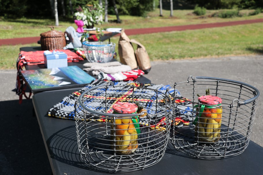 Ziedotāju spēlē tika izsolīti zeltiniešu darbi – acīm baudāmi, vēdera priekam, skaistumam un siltumam, kā arī pavisam praktiskas lietas. Spēlē saziedotos līdzekļus izmantos Zeltiņu kapsētas darba rīku iegādei un nojumes ierīkošanai.