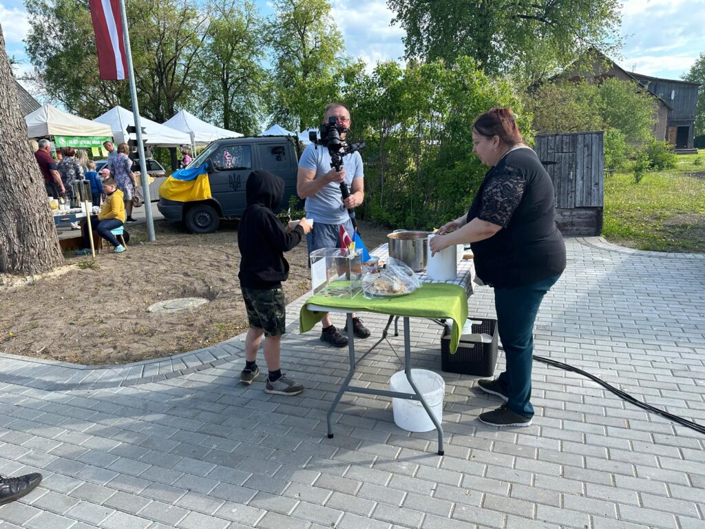 Apes gadatirgū (Avotu ielā 3) par ziedojumiem iespēja nogaršot ukrainietes Olgas Šneideres sātīgo boršču.