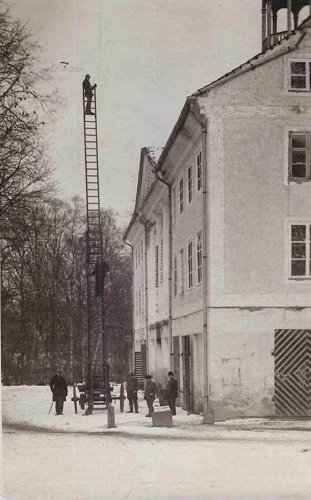 1886. gada maijā Voldemārs fon Vulfs dibināja Gaujienas brīvprātīgo ugunsdzēsēju biedrību un tās vajadzībām piemēroja 1838. gadā celto saimniecības un dzīvojamo ēku. Ugunsdzēsēju vajadzībām izmantoja ēkas dienvidu galu. Zirgu staļļu vietā tika novietoti ugunsdzēsēju piederumi: kāpnes, sūkņi ar šļūtenēm, ķiveres u.c. Barības novietni izremontēja un tur izveidoja ugunsdzēsēju zāli. Vienā no ēkas galiem virs jumta kores uzcēla novērošanas tornīti ar zvanu, kuru skandinot ugunsgrēka gadījumā tika izsaukti ugunsdzēsēji. Šo māju tautā sauca par “špricmāju” Voldemārs fon Vulfs bija ugunsdzēsēju biedrības goda priekšsēdētājs.