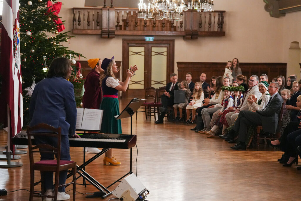 “Es gribu teikt lielu paldies jums, vecāki, par to, ko jūs ikdienā darāt. Es domāju, ka bieži vien tas tā neizskan. Liels paldies arī tiem, kuri ir atgriezušies no ārvalstīm Latvijā. Es zinu, ka tās valstis ir tuvākas un tālākas. Ziemassvētku laiks ir tāds brīnuma gaidīšanas laiks, bet arī laiks, kad mēs atskatāmies uz to, kas ir padarīts un domājam par nākotni,” pauda Valsts prezidents.