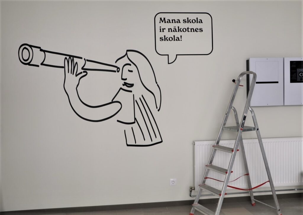 Bez telpu kosmētiskām pārvērtībām un izmaiņām mācību procesa nodrošināšanai nepieciešamajā aprīkojumā, skolēnus sagaidīs arī izmaiņas vidē – daudzviet koplietošanas telpās būs redzami gan informatīvi, gan pārdomas raisoši teksti un zīmējumi. Tos pēc dizaina biroja “H2E” izstrādātā piedāvājuma jau veido māksliniece Baiba Šomase.
