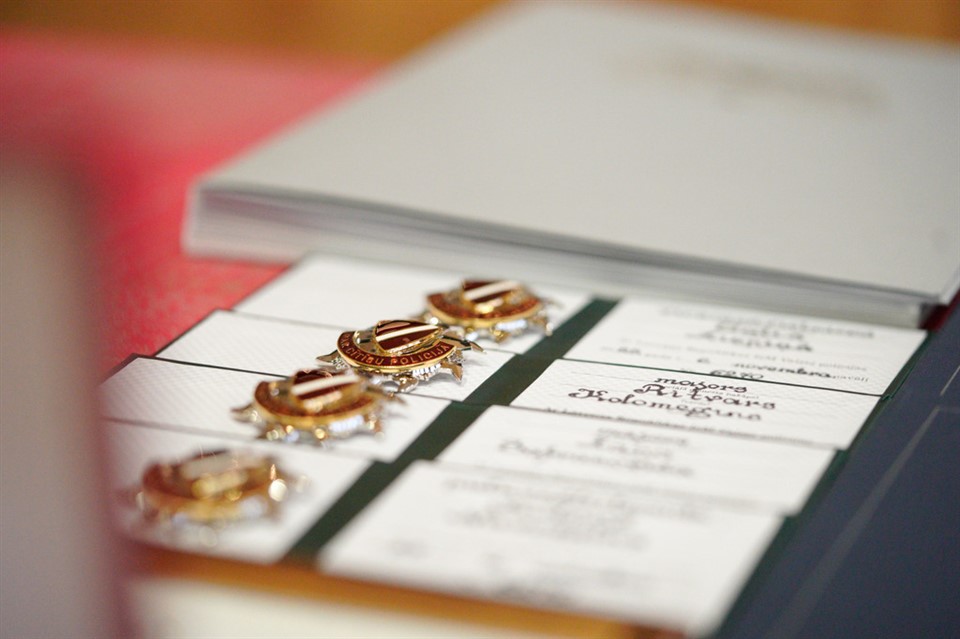 Valsts policijas Krūšu nozīme “Par cītību policijā” – pulkvežleitnantam Andrejam Nakoskinam, majorei Evitai Gabrielei.