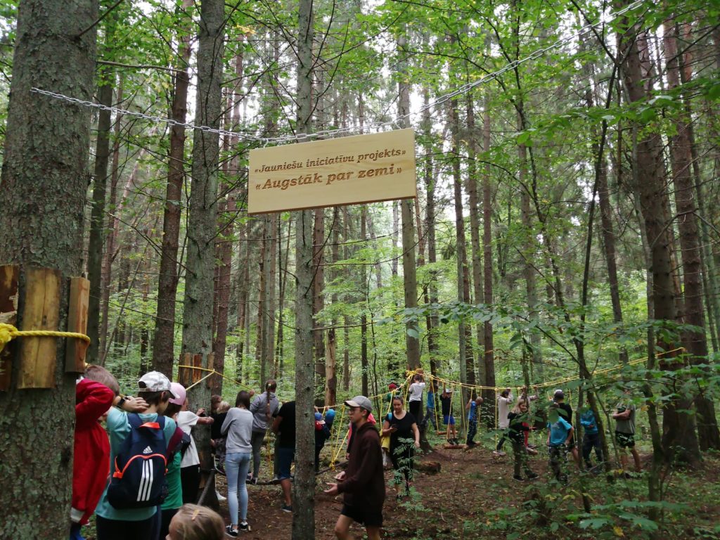 “Tikšķis” dalībniece Līva Kristiāna Orlova vēsta: “Vēlējāmies, lai šo virvju trasi ar prieku varētu izmantot gan mazākie dabas takas apmeklētāji, gan izietu arī pieaugušie. 12. septembrī “Tikšķa” jaunieši atklāja jaunizveidoto trasi, kā arī rīkoja rudens pārgājienu bērniem, kurā tā dalībnieki, ejot pa dabas taku, piestāja sešās pieturvietās. Katrā no tām mazos un arī lielākos ceļotājus sagaidīja dažādi pasaku varoņi – Mazā raganiņa, rūķis un meža laumiņas, kuri aicināja veikt dažādus uzdevumus. Viens no uzdevumiem bija iziet “Tikšķa” jauniešu izveidoto virvju trasi. Šī pārgājiena noslēgumā visi cienājās ar zupu, kuru uz ugunskura bija gatavojusi mūsu pavārīte Ieva. Bērniem un arī jauniešiem rudens pārgājiens un virvju trase “Augstāk par zemi” patika.”