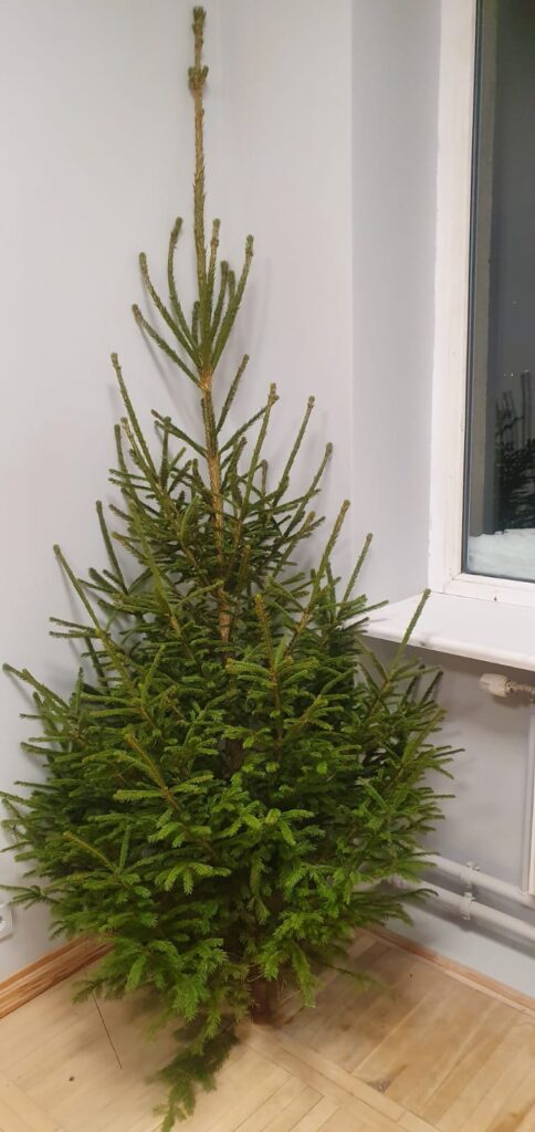 - Eglīti iestiprina egles kājā, kurai apakšā ir trauks ar ūdeni, un regulāri pārbauda, vai ūdens traukā nav iztvaikojis.