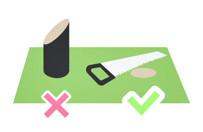 - Eglīte jānozāģē līdz ar zemi. Ja atstāsiet augstu celmu, uz tā var savainoties meža dzīvnieki.