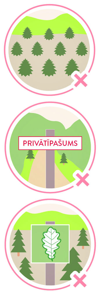 Eglīti svētkiem var doties meklēt tikai AS “Latvijas valsts meži” apsaimniekotajos mežos Latvijas teritorijā, kas dabā apzīmēti ar LVM īpašuma zīmēm – uz dzeltena fona attēlots logotips. Uz LVM robežas ceļa vai kvartālstigas malā un kvartālstigu krustpunktos izvietotās zīmes vēsta, ka tā ir valsts mežu teritorija. LVM apsaimniekoto mežu izvietojumu precīzi var aplūkot arī lietotnē LVM GEO Mobile. Fona karšu sadaļā pieslēdzot “LVM meža karte”, ar apzīmējumu “LVM” ir attēlotas valsts mežu teritorijas.