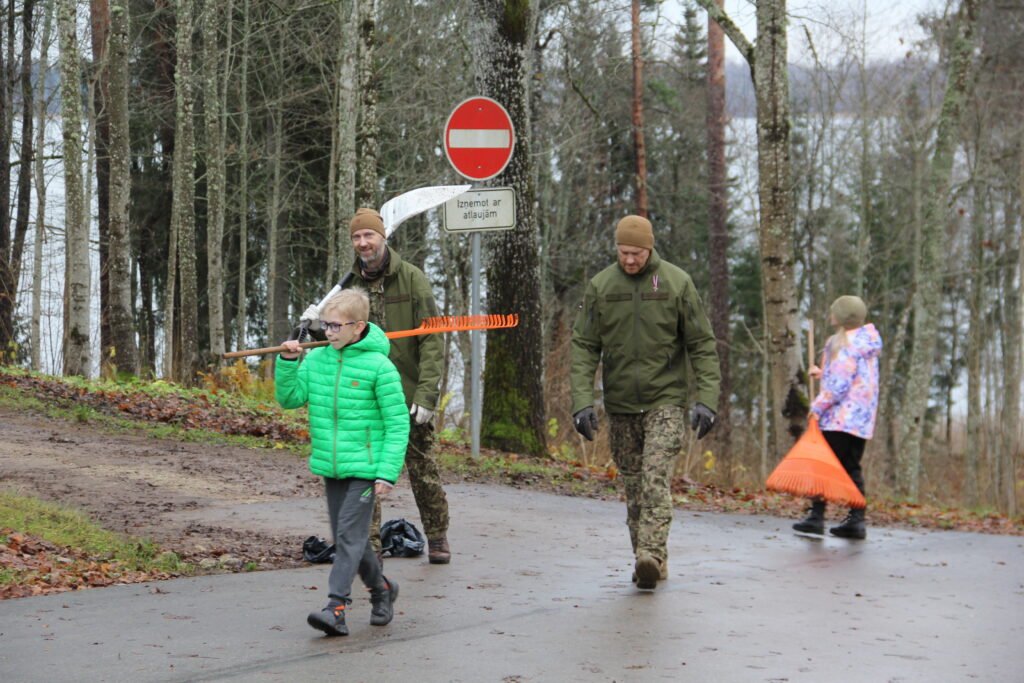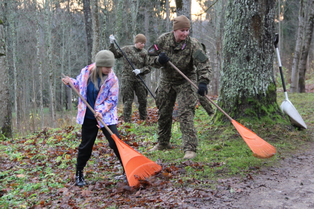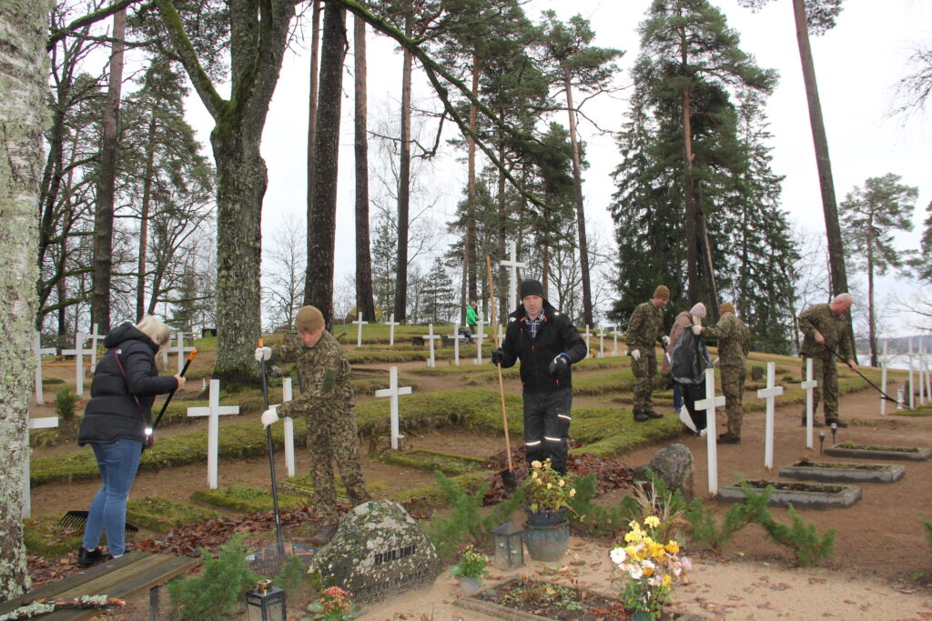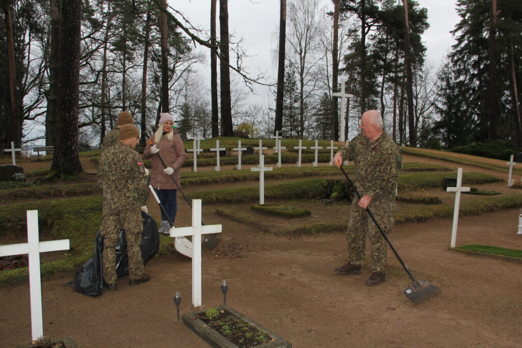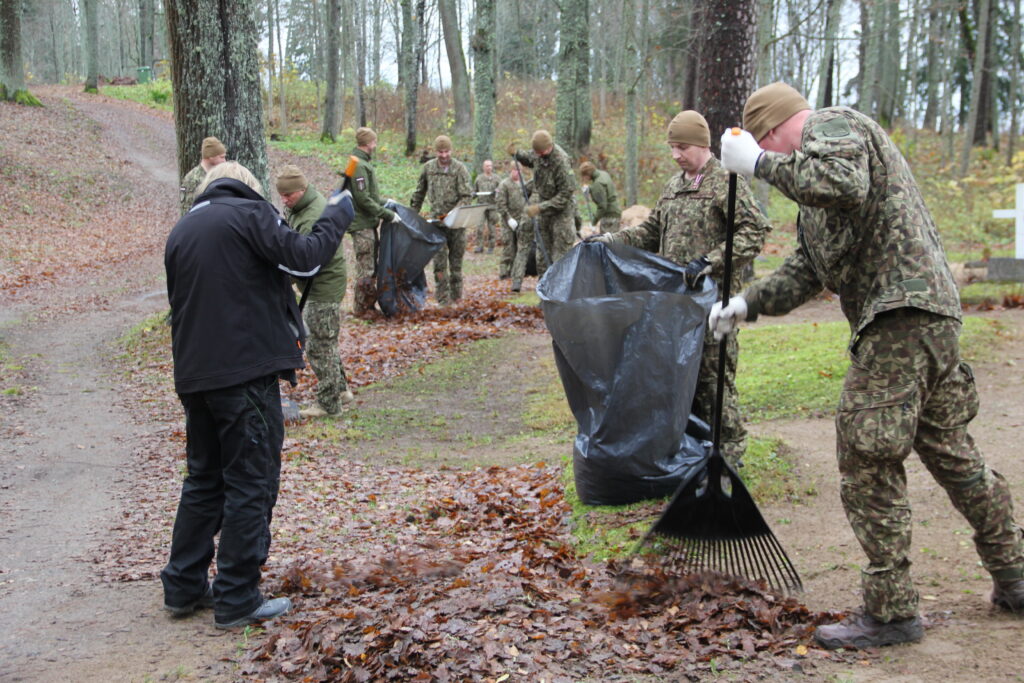 Tradicionāli pirms Lāčplēša dienas Nacionālo bruņoto spēku Kājnieku skolas personāls sakopj Lāčplēša Kara ordeņa kavalieru kapu kopiņas, 7. Siguldas Kājnieku pulka pieminekļa kalna un Alūksnes Garnizona kapu teritorijas, kā arī Kājnieku skolai piegulošā Alūksnes muižas parka teritoriju. Arī šī diena nebija izņēmums un Kājnieku skolas pārstāvji, bruņojušies ar grābekļiem, maisiem un ķerrām, stundas laikā iecerētos sakopšanas darbus Garnizona kapu teritorijā bija paveikuši.