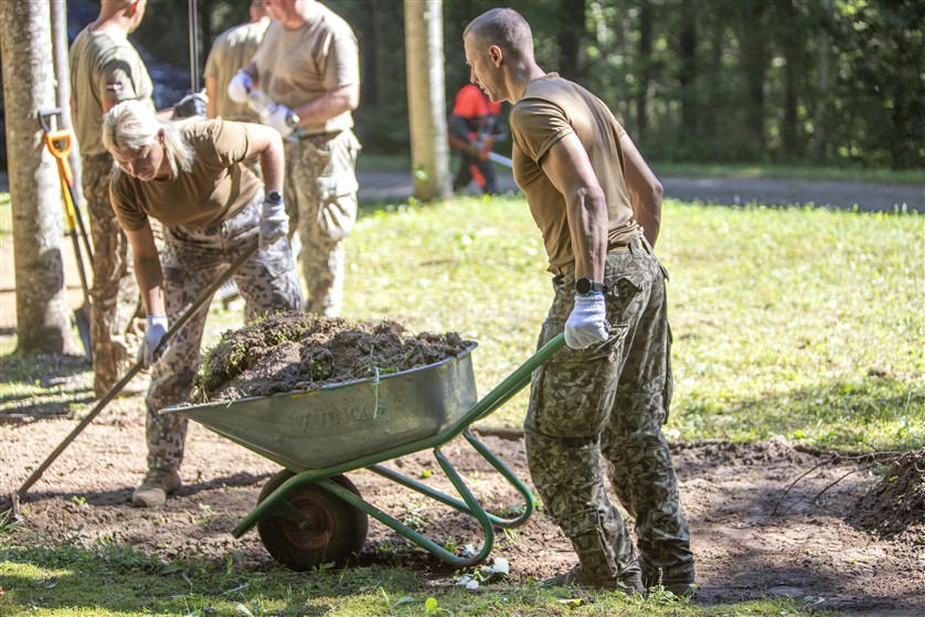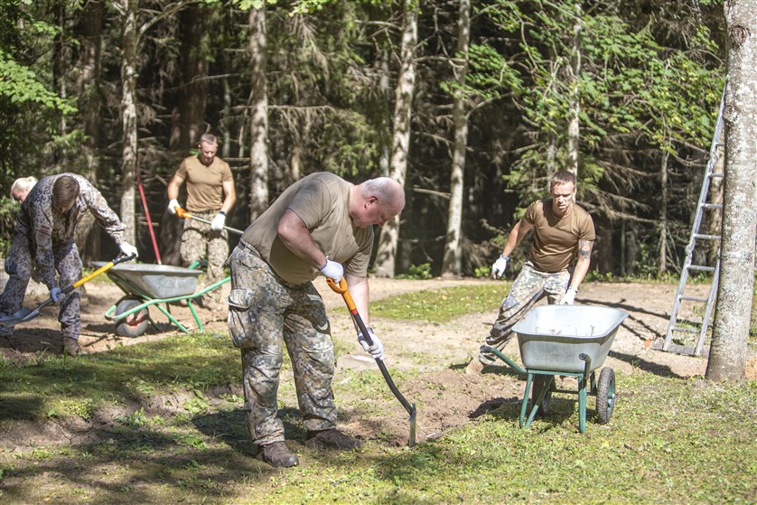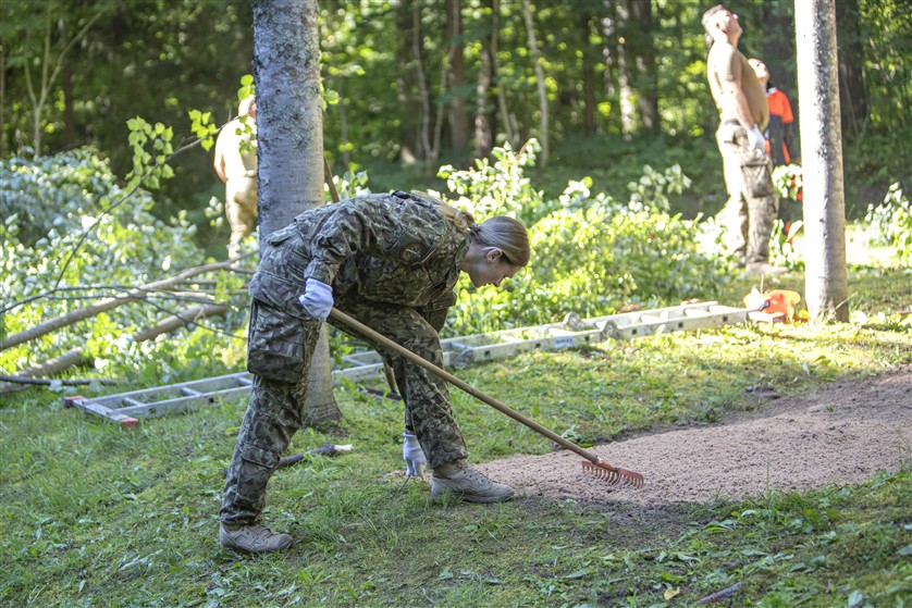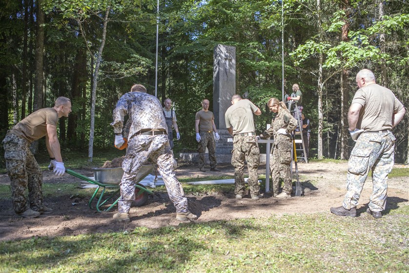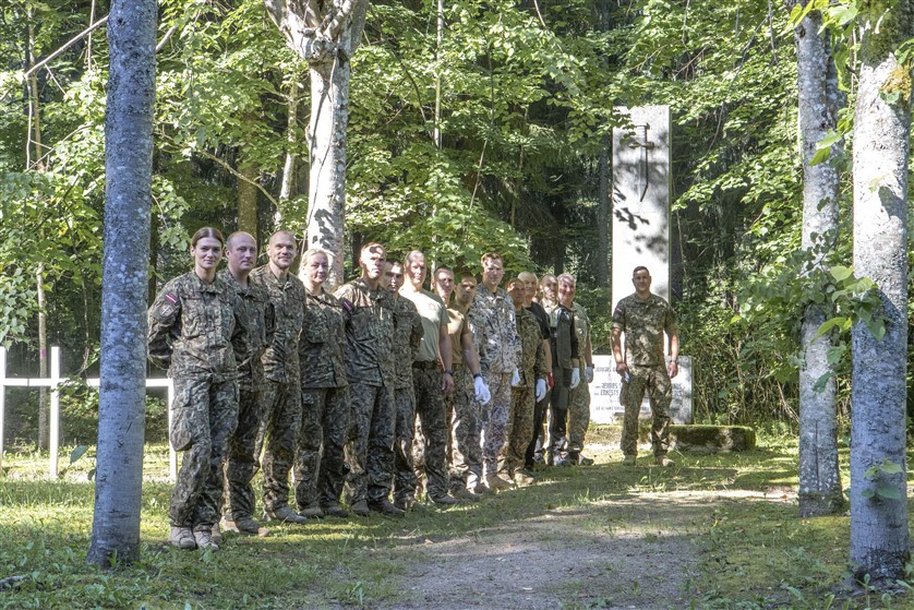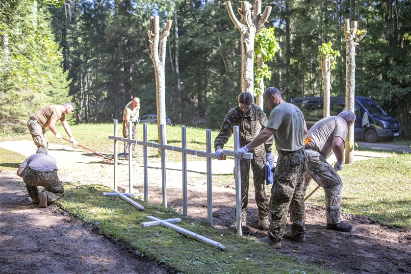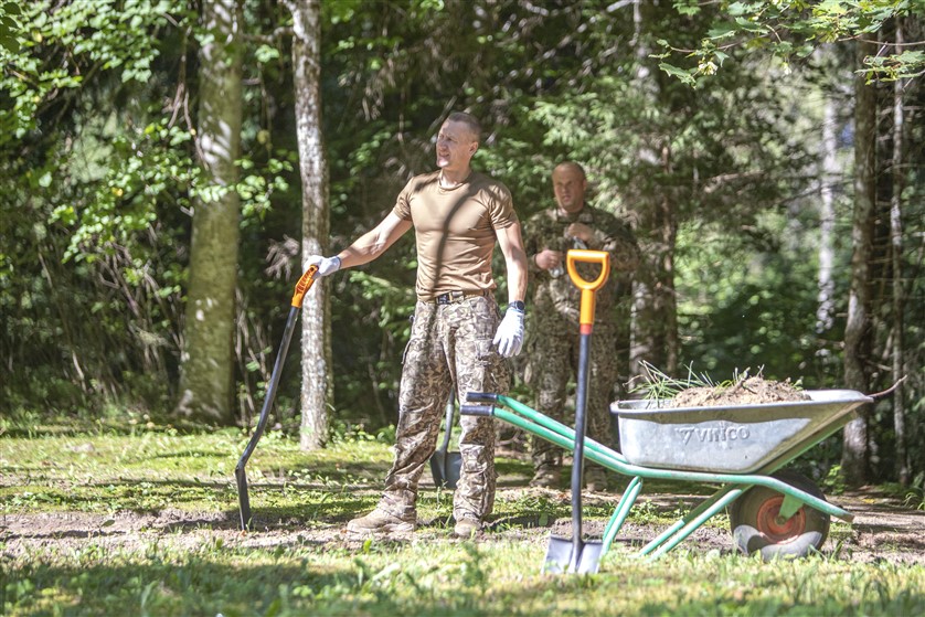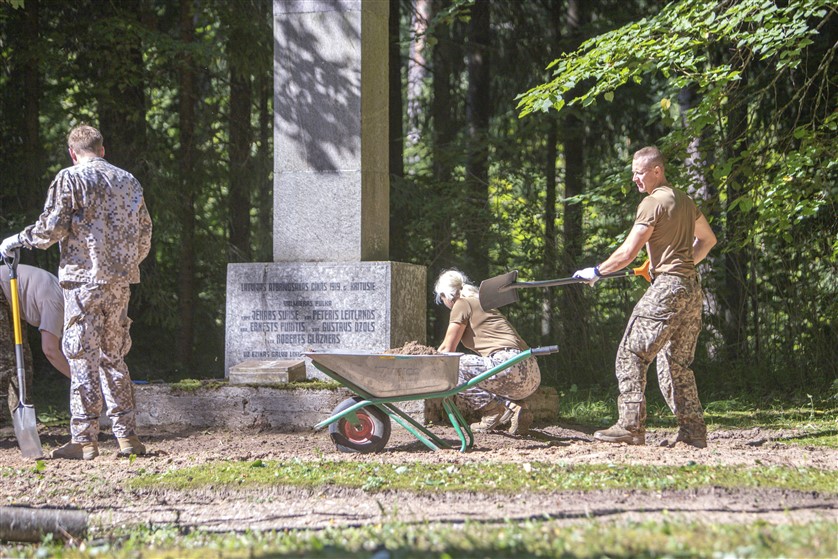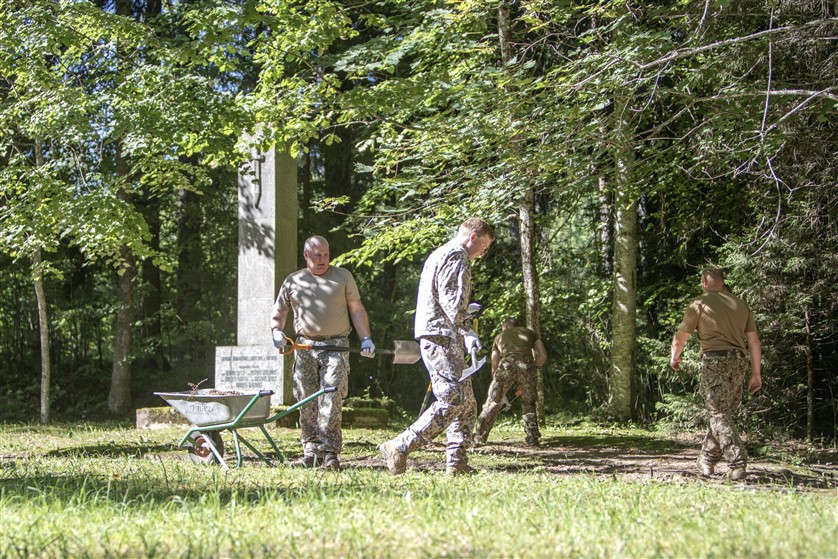 Nacionālo bruņoto spēku (NBS) Kājnieku skolas karavīri ceturtdien veica vērienīgus sakopšanas darbus Karvas Brāļu kapos.