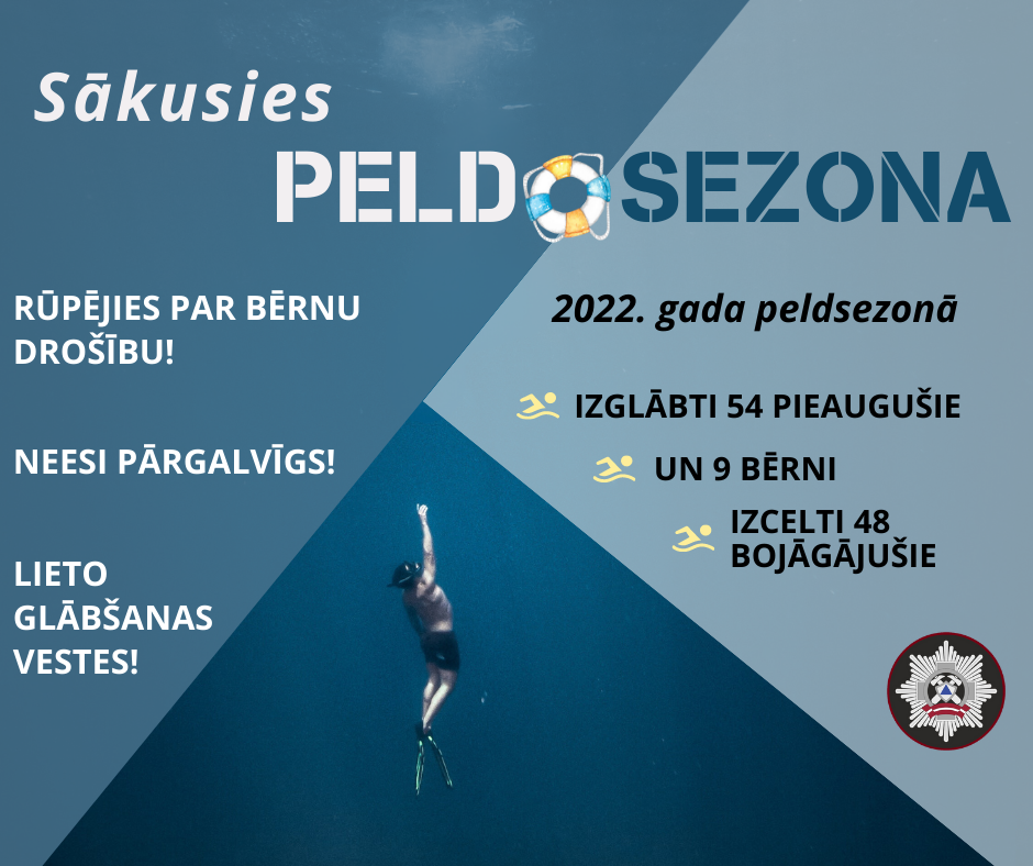 15.maijā Latvijā atklāta oficiālā peldsezona, arī šīs nedēļas laikapstākļu prognoze daudzus mudinās doties atpūsties pie ūdens un peldēt. Aizvadītajā gadā peldsezonā (laika posmā no maija līdz septembrim) ugunsdzēsēji glābēji ūdenstilpēs izglāba 63 cilvēkus, tai skaitā deviņus bērnus, bet traģiski atpūta pie ūdens noslēdzās 48 cilvēkiem.