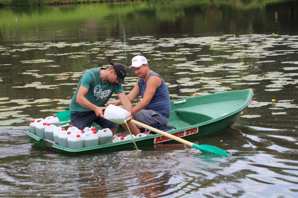 Dīķī iepretim Alūksnes Jaunajai pilij veiktas jau otrās kontrolanalīzes ūdens paraugiem un redzams, ka sākotnēji konstatētās divu sugu zilaļģes, kas sastādīja ap 30 līdz 40 % no kopējās dīķī esošās aļģu masas, ir samazinājušās līdz 0,8 līdz 1 %. “Ūdens kvalitāte un dīķa spoguļvirsmas kvalitāte ir būtiski uzlabojusies, bet vizuāli vēl redzams, ka dīķim ir problēmas un tas saistīts ar dīķa piesārņoto grunti, kas tagad redzama caur dzidro ūdeni. Septembra vidū veiks trešās analīzes un saņemsim slēdzienu par projekta rezultātiem,” informē I. Berkulis.