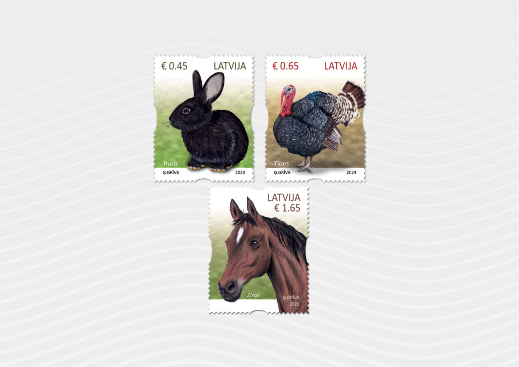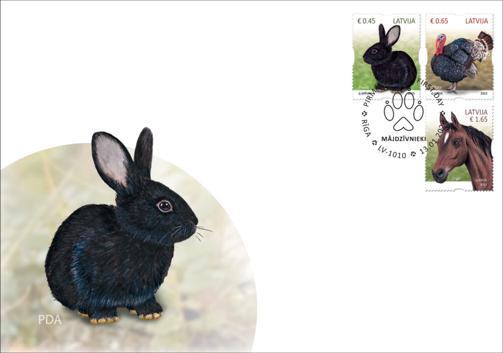 Filatēlijas sērija Mājdzīvnieki tiek papildināta ar trim jaunām pastmarkām ar truša, tītara un zirga attēlu. Līdz ar tām izdota arī īpaša aploksne 800 eksemplāros. Šīm pastmarkām ir pašlīmējoša pamatne, tādējādi tās ir īpaši ērtas lietošanā.