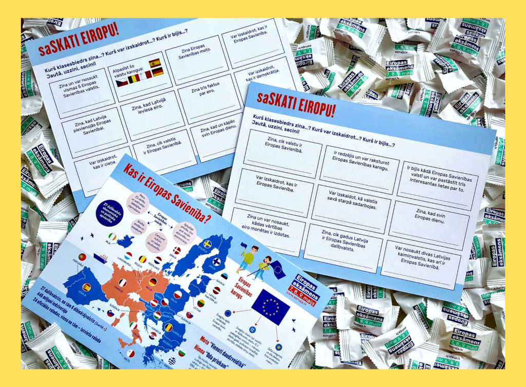 Esam apkopojuši idejas, materiālus, pasākumus, kas bagātinās Eiropas dienas svinēšanu Jūsu skolā. Atgādinām, ka Eiropas Savienības mājas Izglītības resursu centrā varat saņemt noderīgus materiālus Eiropas dienas noformējumam, spēles, vizuālos materiālus, kā arī konfektes ar Eiropas eksāmena logo (piedāvājums spēkā, kamēr konfektes pieejamas). Rakstiet esmaja@esmaja.lv vai zvaniet 67085445.