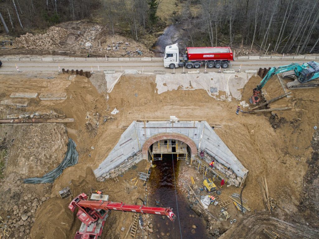 Augšlīgatnē turpinās Līgatnes upes caurtekas (64,8. km) atjaunošanas darbi/ foto: LVC