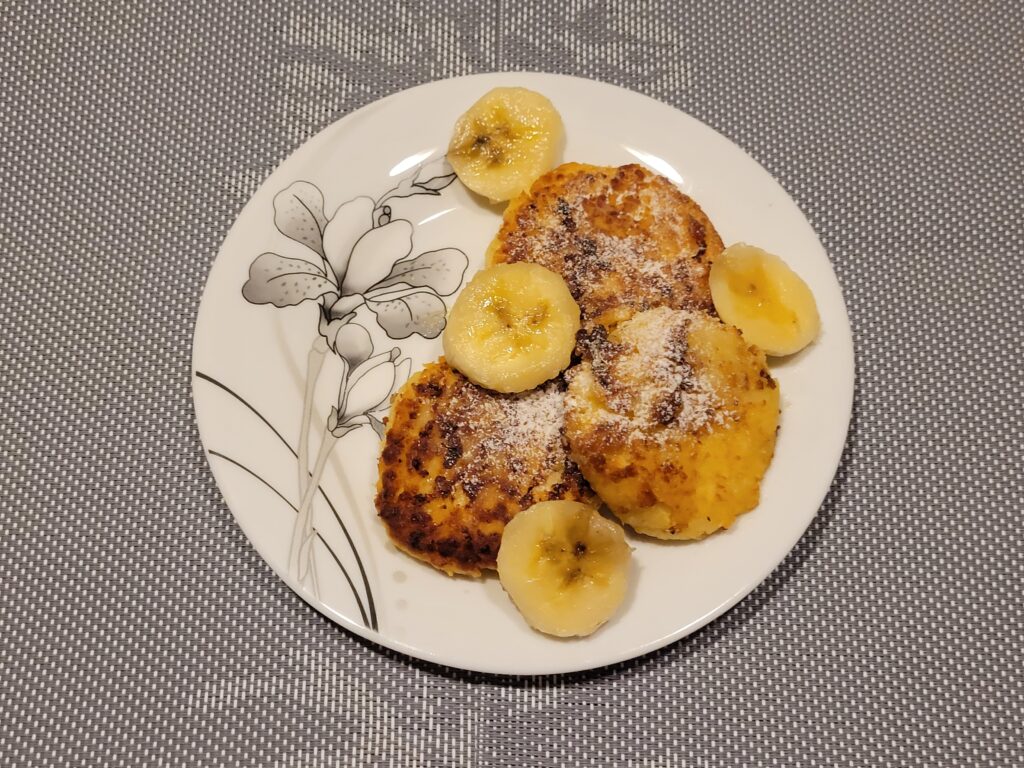 Biezpiena plācenīši ir gardi, un tos reizēm mēdzu cept, taču pēc šīs receptes to gan vēl nebiju darījusi. Atceroties, ka 6. februārī saskaņā ar latviskās sadzīves tradīcijām atzīmēsim Meteņus, tos varam sagaidīt arī ar kādu gardu pankūku vai pat šādu, eksotiskāku, plācenīti, jo ticējumi vēsta, ka Metenī daudz un bagātīgi jāēd. To arī mūsu senči darīja, jo pēc tam būs jādzīvo pieticīgāk. Svinībām gatavoja cūkas smeceri, kājas, ausis, cepa miežu un kaņepju plāceņus, pīrāgus, vārīja zirņus un pupas. Meteņu ēdiens ir zīdenis jeb grūdenis, ko gatavo no žāvētas cūkas galvas puses, savārot ar grūbām un kartupeļiem. Saimnieces cepušas arī īpašu Meteņu maizi. Taču, ja nu nesanāk svinēt Meteņus saskaņā ar senlatviešu Saules gada kalendāru, mūsdienās tos iespējams atzīmēt arī septiņas nedēļas pirms Lieldienām. Biezpienam pievienoju olu, cukuru, vaniļas cukuru, sāli un kokosriekstu skaidiņas un visu kopā labi samaisīju. Atstāju masu mierā kādas 20 minūtes. Banānu nomazgāju, nomizoju un sagriezu ripiņās. Pēc tam ar karoti ņēmu pagatavoto biezpiena masu, vidū ieliku un apslēpu pa banāna ripiņai, un, stingri piespaidot, veidoju plācenīšus. Pēc tam tos apviļāju miltos un cepu pannā ar olīveļļu no abām pusēm, līdz tie kļuva zeltaini. Tā kā šoreiz izmantotais biezpiens bija gadījies pasauss, plācenīšus apgriezt cepšanai no otras puses vajadzēja uzmanīgi, lai tie neizjuktu. Gatavus tos vēl pārkaisīju ar pūdercukuru. Pirms celšanas galdā plācenīšus varam rotāt arī ar augļiem vai kādu odziņu.