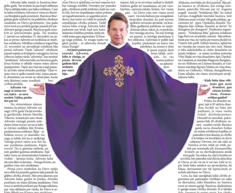 J. Zvirgzdiņam arī personiski Adventa laiks ir zīmīgs, jo pirms diviem gadiem viņu ordinēja par mācītāju Zeltiņu un Lejas draudzē.